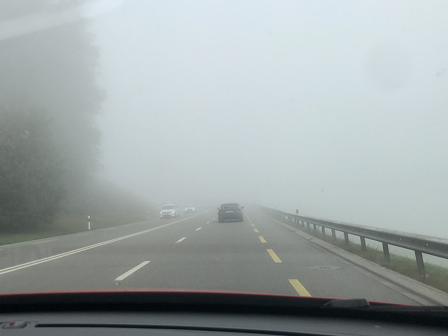 Nieko gero nežadantis kelias į kalnus - važiuojam debesyse. Oras vietoje lyg žadamas neblogas, net saulė nušvist turėtų, tad nenusimenam, šiandien jau nebetoli važiuojam, ir greit būnam vietoje.