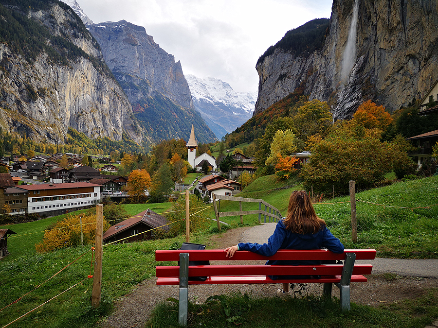 Lauterbrunnen slėnis - vienas iš Šveicarijos jaukiausių ir gražiausių slėnių. Kaip mano vyras sako - sutiksi čia vien kiniečius. Kad išreklamuota vieta - tai tiesa. Ko paklausi, kas buvęs Šveicarijoje - Liucerna ir Lauterbrunnen su pasikėlimu į Jungfrau kalną. Vyras nieku gyvu nenorėjo manęs čia vežti, tad kažkada ėmiau ir atsibeldžiau čia pati. 3 val. traukiniu su trim persėdimais pirmyn, ir tas pats atgal. Nenusivyliau. Priešingai, likau tiek sužavėta slėnio ramumu, grožiu, kad noriu grįžti čia dar ne vieną kartą. Išlaipiojau tada viską visame miestelyje ir jo apylinkėse, ieškodama gražiausių vaizdų nuotraukoms. Planavau pabūti pora valandų, o gavosi taip, kad pravaikščiojau visą dieną kartu su kalne krentančių įspūdingų Trumellbach krioklių aplankymu. Tad šįkart žinojau, kur vesti sesę, žinojau ko ji nori, tad neilgai trukus atsidūrėme fotogeniškiausioje Lauterbrunen miestuko vietoje - kol dar saulė šviečia.