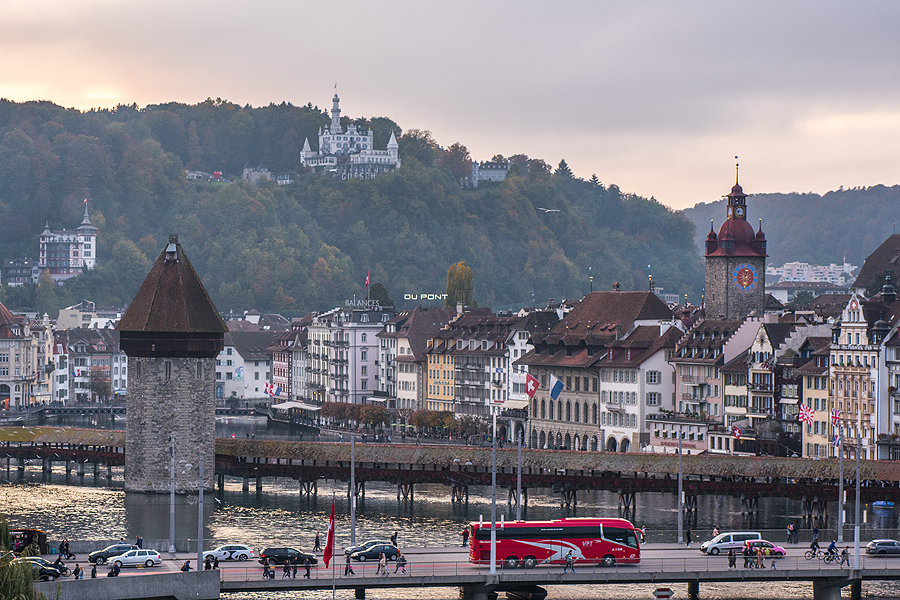Po Lauterbrunnen kaip ir laikas namo, ir pakeliui buvo Liucerna. Tas miestelis, kurį visi aplanko, kai važiuoja į Šveicariją, tad sesei jį siūliau paskiausiai - man miestai nelabai įdomūs, lyginant su fantastiška Šveicarijos gamta. Na, bet jau tiek prasimalus, ok, užsukam. Liucerna, miestelis esantis šalia Keturių kantonų ežero - Maironio eilėraštį turbūt visi prisimenate? Taip pat iš Liucernos matosi gražuolis Pilatus kalnas, Rigi kalnas - pagrindinė Švyco kantono įžymybė..
