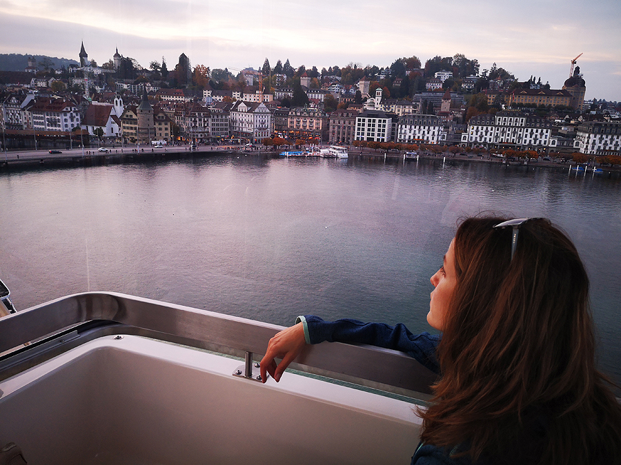 Užvalgiusios greito maisto iš mugės kioskelio, užsiropščiame į šalia miesto traukinių stoties veikusį apžvalgos ratą. Beje, Liucernoje vasario mėnesį vyksta vienas iš didžiausių Užgavėnių karnavalų Šveicarijoje. Dar vienas vyksta Bazelyje, gaila, neteko sudalyvauti. Prasideda jie kaip taisyklė naktį - 4 ar 5 valandą nakties ir vyksta darbo dienomis, be šansų nuvažiuoti. Vieną kartą nuskilo pabūti Liucernoje su vaikais ir tėtis dar tada buvo svečiuose, neskaitant to, kad sušąlom, karnavalas labai labai patiko.
