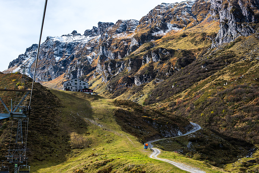 Kadangi orus gerus žada link Graubunden kantono, varom į tą pusę. Pirmas taškas ne taip toli namų - Wangs Talstation Pizolbahnen - gondolinio keltuvo stotis. Mūsų maršrutas vadinasi 5 ežerų pasivaikščiojimas (5-Seen-Wanderung).