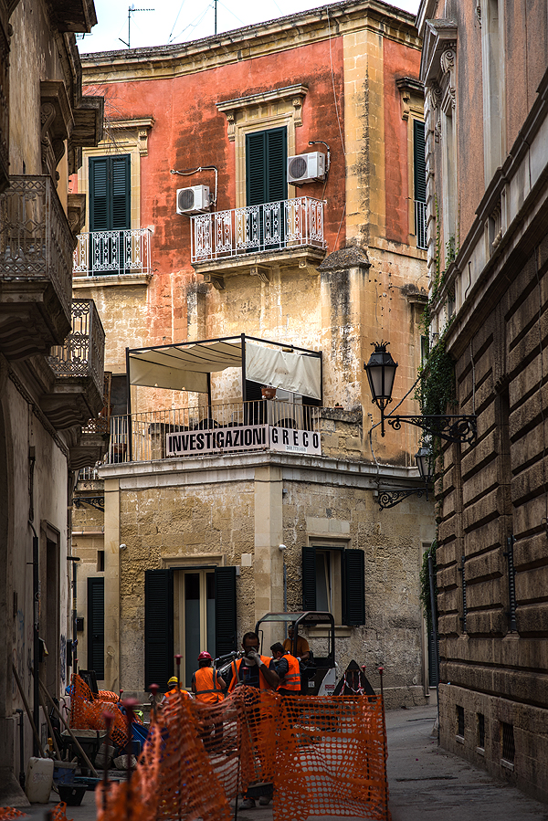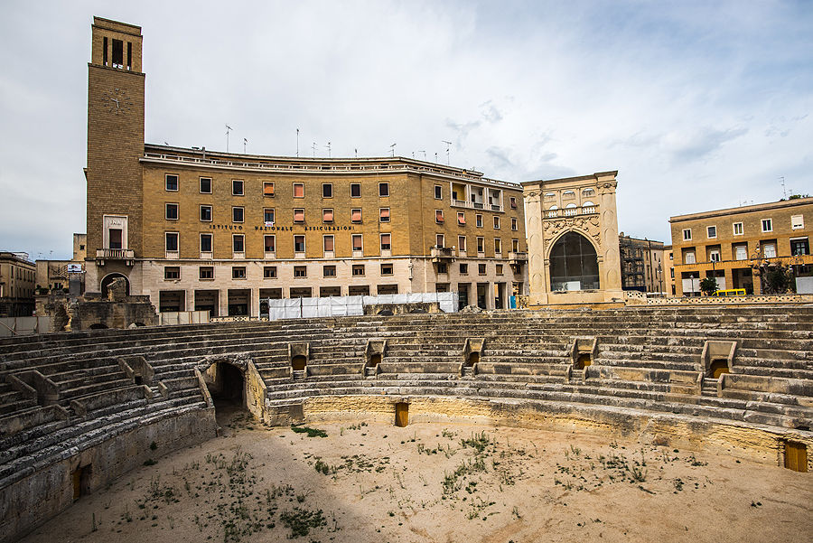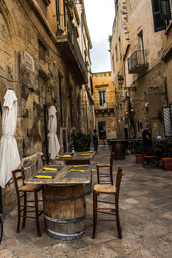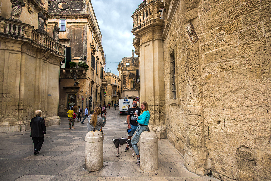 Lecce patinka. Gelsva barokinė architektūra nuostabi, už kampo vis nauji ir nauji gražūs pastatai, bažnyčios, sako, jų net 40!, rūmai, net amfiteatras ir pilis, pro kurios gynybinę sieną pražygiavom dukart ir nenujautėm. Oras puikus, 24-25 ir švelni saulė pro skystus debesis.
