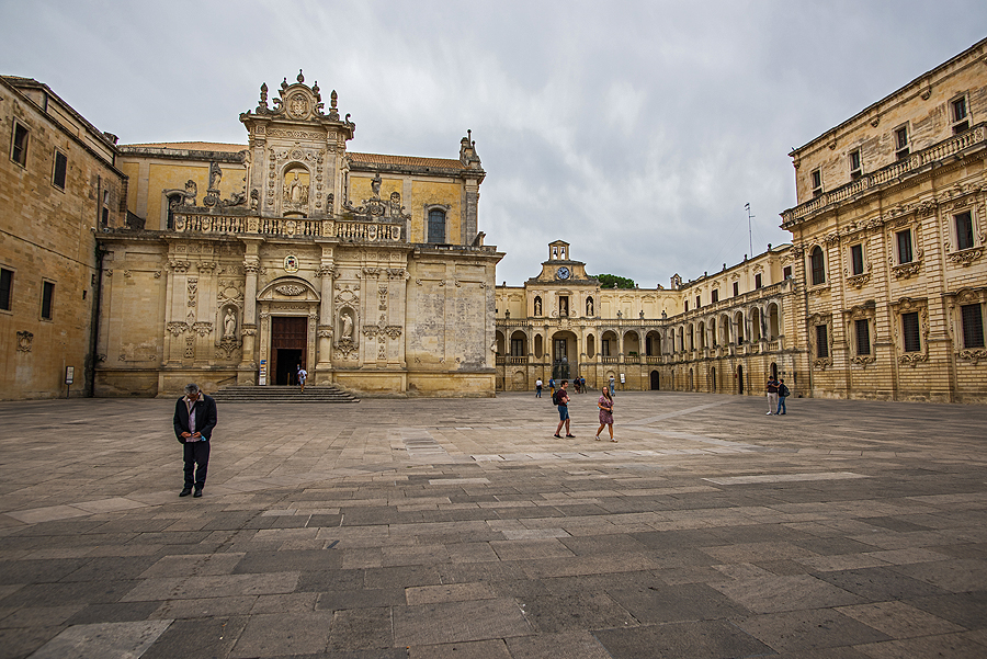 Baigiam apžiūrėt Lečės grožybes, vos nepražiopsom Duomo aikštės, einam siaura gatvyte, lyg nieko labai nežadančia ir staiga ooo, patekom į aikštę, pilną nuostabaus grožio pastatų!