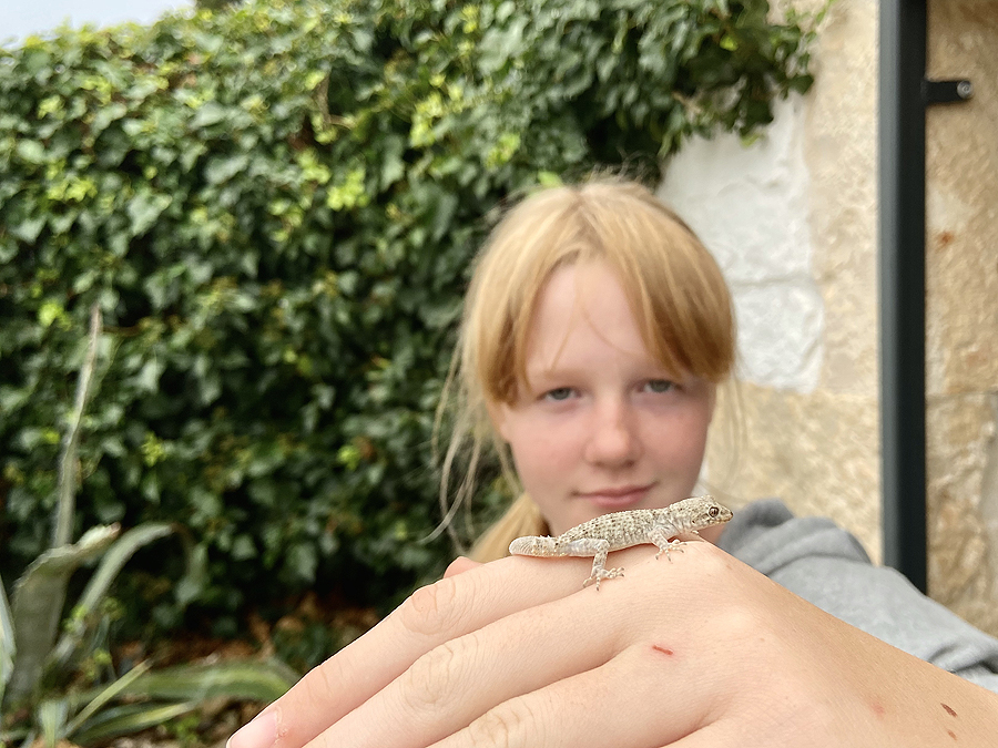 Tik grįžus visa šeima kieme pradeda aikčiot, ui koks mielas - jau pagalvoju, katinas, kuris buvo bukingo skelbime įkeltas šalia namo foto. Bet ne, ten mielas gekoniukas. Paglamžom, paleidžiam.