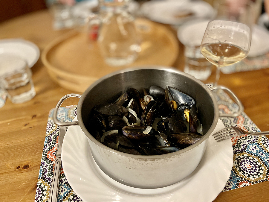 Vakarienei šeima kepėsi mėsą lyg, o aš sau gremžiu nusipirktas šviežias moliuskų kriaukles, su svogūnais, baltu vynu gaunas idealiai - net vaikai valgo!
