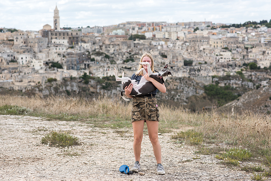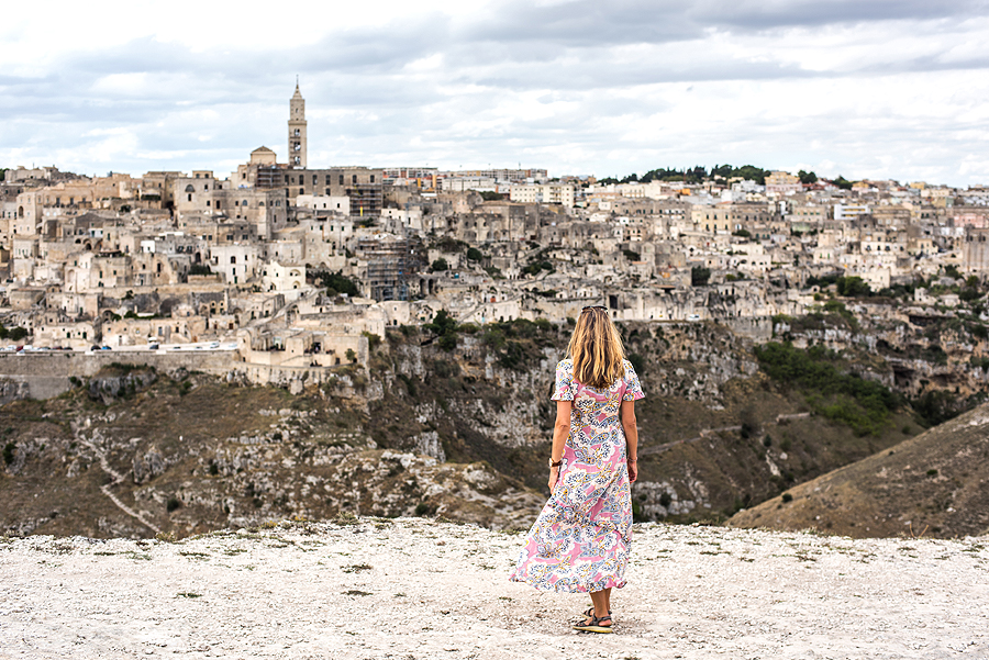 Italijos urvų miestą Materą apžiūrim tik iš tolo - Covid 19 ir šeimos norų rezultatas, užtrunkam, kol nuvingiuojam iš pagrindinio kelio į šalia miesto esantį šlaitą, nuo kurio matosi geras vaizdas. Fotkinu, laukiu saulės, atsiveria visi Materos urvai ir nublukę namai, geras foto taškas. Internete buvau radusi gerą puslapį, kuris pataria, kur fotografuoti Materoje, tad šis taškas nusižiūrėtas iš ten.