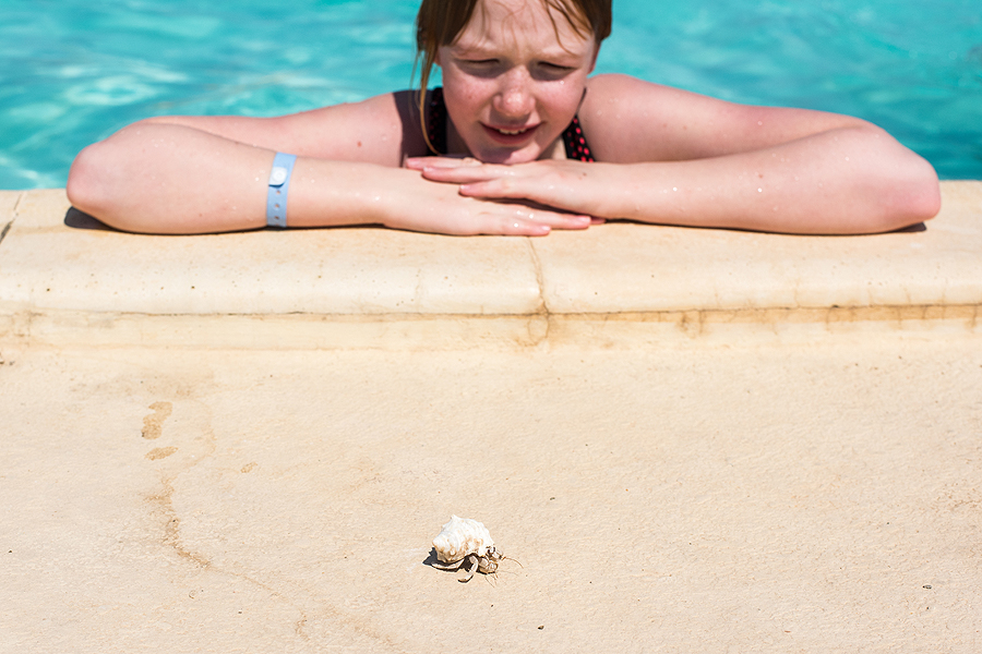 Krabuko istorija tokia - iš paplūdimio ėjo lenkas pro mus, kurio klausėm patarimų apie ekskursijas, ir pasakė - gal gali vaikai nunešt kriauklę į jūrą? Gali, žinoma. Tik prieš tai trumpa fotosesija.
