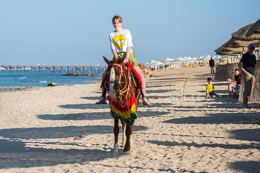 Pradžioje aš valkiojausi po šalia viešbučio esančią dykumą, fotkinau vaiką ant arklio ir saugojau, o paskui uošviui perleidau tą malonumą. Berniukas, prižiūrintis arklį, sažiningai išvaikščiojo visą valandą, uošvis jau norėjo anksčiau nutraukti tą pramogą.