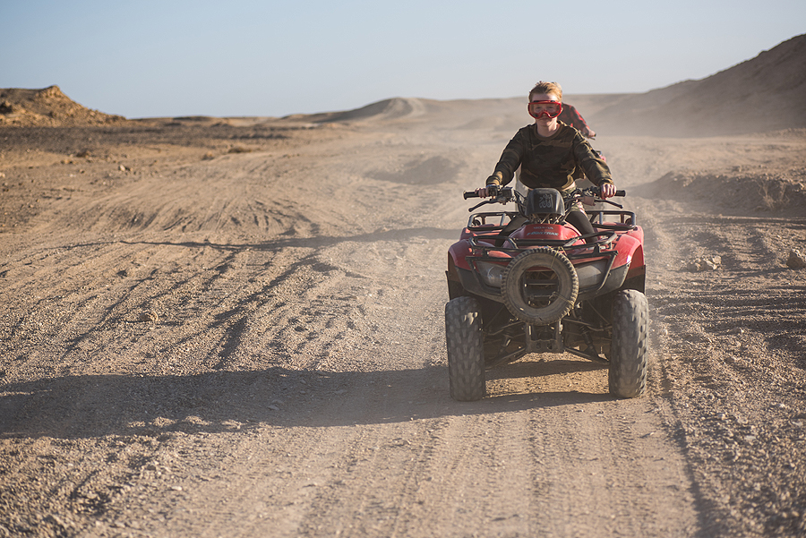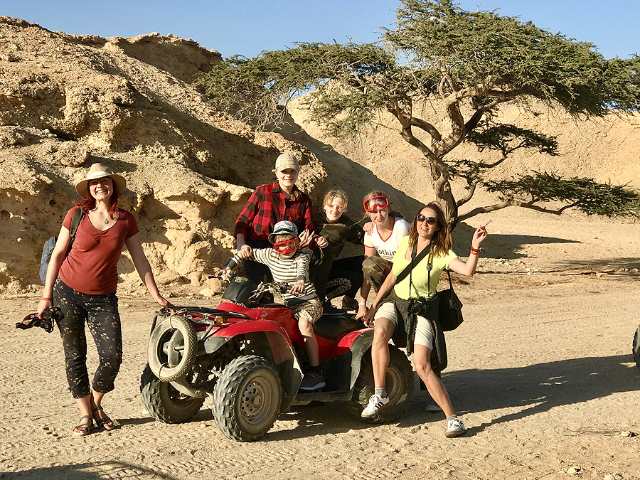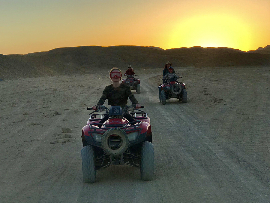 Paskutinę dieną išvažiuojame pasivažinėti su keturračiais ir išgert arbatos pas beduinus dykumoje. Nuomojamės baisuokliškus nardymo akinius nuo dulkių - labai pasiteisinęs dalykas! Dulkini buvome nuo galvos iki kojų, plaukai baisūs, žodžiu, ne be reikalo siūlė ir skaras užsidengti plaukams, bet pagailėjome 5dol už jas.