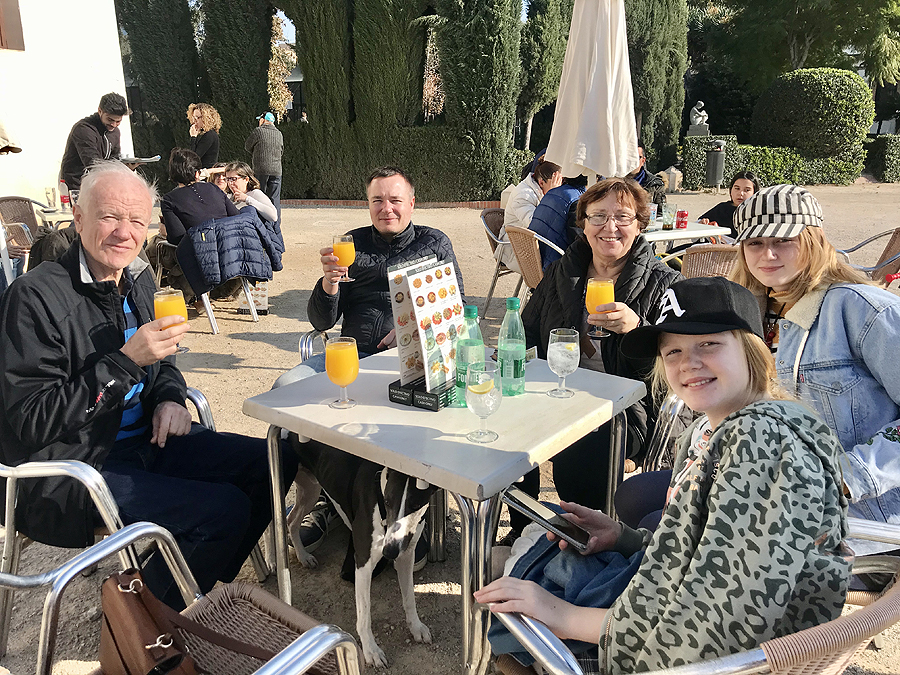 Su maistu pasirodė bus negerai - niekaip neradom kur prisėst, nuvarėm į tokį rajoną, kur tik barai, barai, visi geria ir niekas nevalgo, o buvo gal apie 16-17 valanda. Galų gale užeinam itališką piceriją, kadangi reikalavimai yra aiškūs - man turi būt kroketų, vaikam pica, vyrui jūrų gėrybės, ši vieta netinka. Nėr kroketų. Padavėjas labai geranoriškai aiškina - va, paeikite ten už kampo, ten bus bariukas, kur dabar dirba. Bet mes žvilgt dar kartą į tvarkingus, su šildytuvais, staliukus lauke ir apsisprendžiam - sėdam čia. Labai skaniai ir maloniai pavakarieniavom. Tada mes su šunim ir vaikais namo, vyras - atsivežt tėvų, atskrendančių į Alikantę iš Kauno. Skrydis vėlyvas, tad aš vaikus sukišu į lovas, pati siuvinėti (žiemą visad siuvinėju kryželiu - manija kažkokia) ir laukiu kompanijos papildymo.