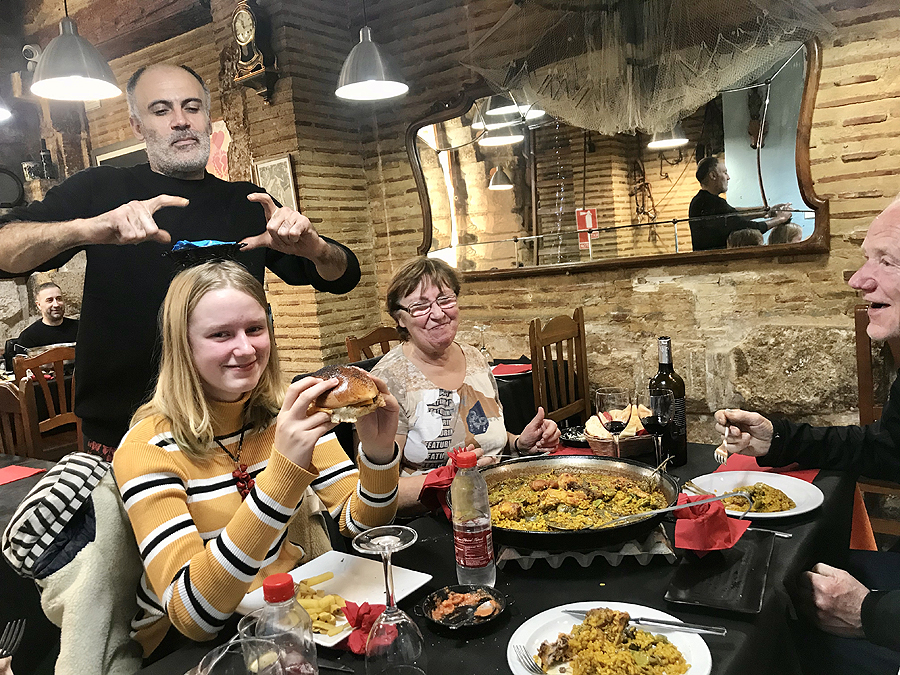 Paelja patiekalas kilęs iš būtent Valensijos. Lendam į bariuką, laimei, priima su šunimi į vidų, tad šiltai, linksmai ir skaniai pasisėdime.
