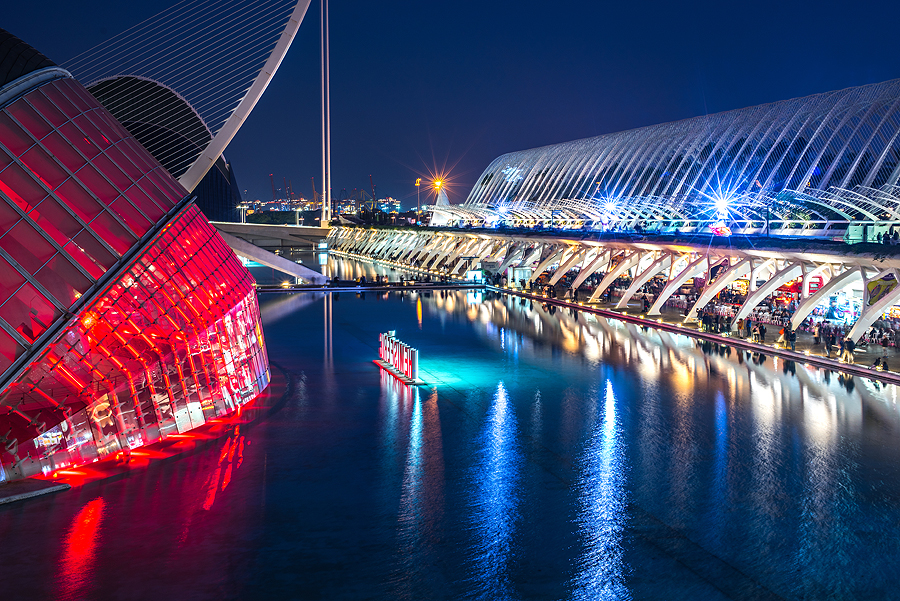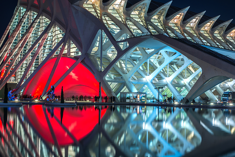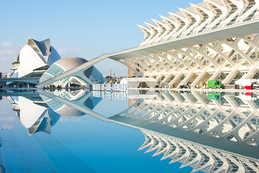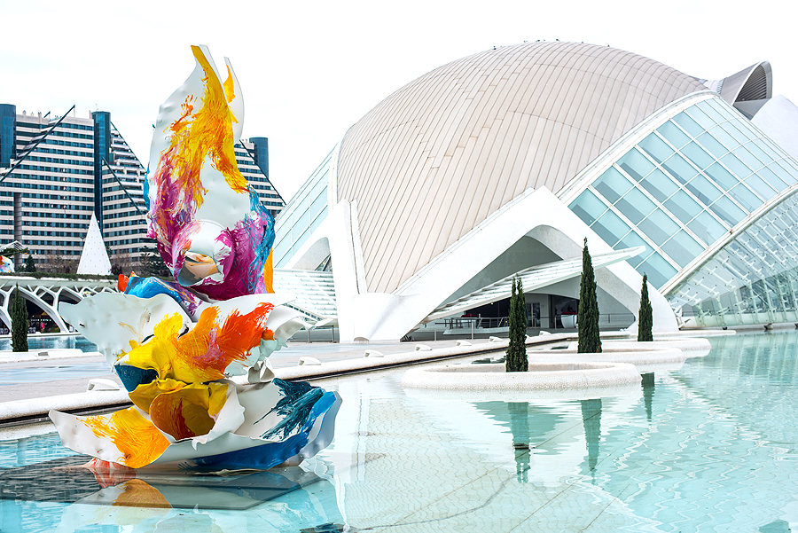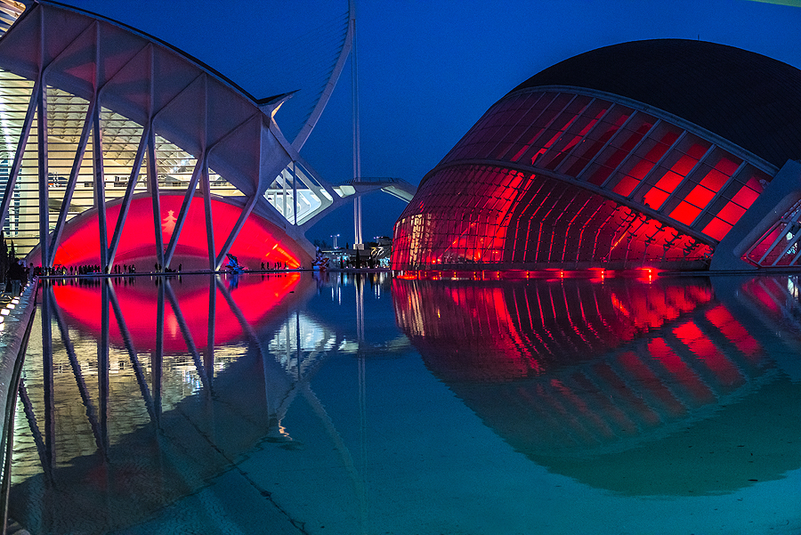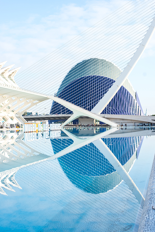 Tada dalis kompanijos liko namuose ilsėtis, o aš su vyru ir jo tėčiu patraukėme dar link Valensijos pasididžiavimo - Mokslo ir Menų miestelio. Ir jis ne šiaip sau vadinamas miesteliu - tai milžiniškas penkių unikalių futuristinio stiliaus pastatų kompleksas, kuriame įkurtas planetariumas, mokslo muziejus, okeanografijos parkas, kino teatras, operos teatras bei augalų galerija. Taip pat vandenyno muziejuje galite išvysti didžiausią Europoje akvariumą bei susipažinti su viso pasaulio jūrine ekosistema. Vertas dėmesio Palau de les Arts Reina Sofia operos teatras, kuris dėl puikios akustikos yra įrašytas į geriausių Europos operos teatrų sąrašą. Įspūdinga!