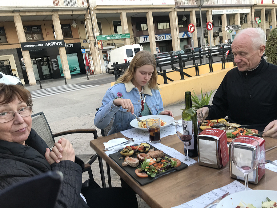 Su maistu po 16 val. problematiška, nes ispanai daro karštą maistą iki 16 val, tada užsidaro iki kokių 19-20 val. ir atsidaro jau vakarienės laikui. Mes tą 16 val. praleidom, tad dabar gan sunkiai ir ne iš karto randam kur užkąst. Bet randam. Ir skaniai!