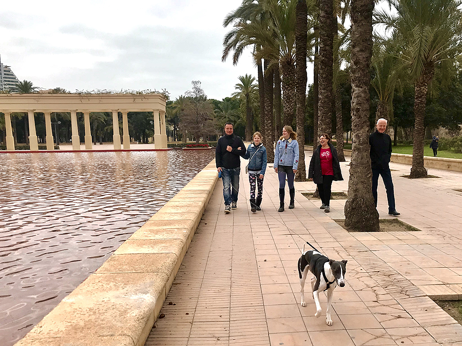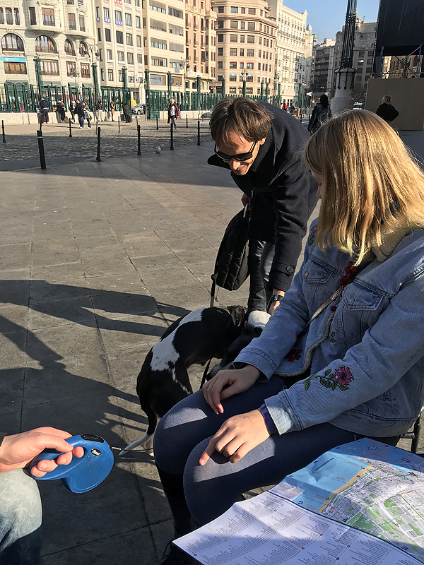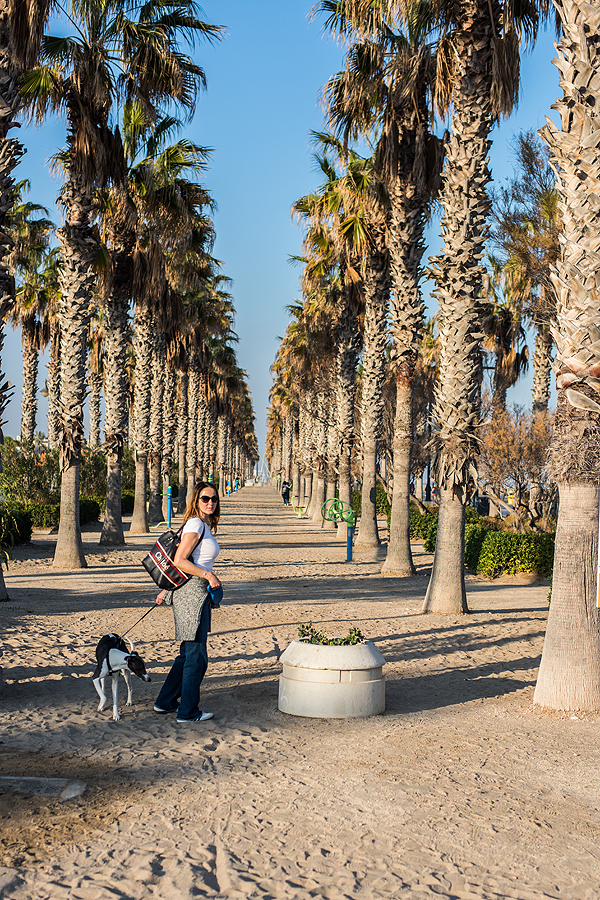 Savaitę atsimalus po Ispanijos kaimus, važiuojame į civilizaciją - trečią pagal dydį Ispanijos miestą Valensiją, po Madrido ir Barselonos. Kai bukinom butuką, nepasirodė iš žemėlapio tas miestas didelis, ir tai buvo mūsų klaida. Teko daaaaaug vaikščioti pėsčiomis. Šiaip normaliem žmonėm miestas patogus taksi, metro ir visa kita viešojo transporto sistema, bet mes gi su šunim :) Ispanai į traukinius ir autobusus šunų neįsileidžia, ir tas man labai nepatinka, Šveicarijoje viskas kitaip - perki šuniui bilietą 50 proc pilnos kainos ir varai su juo kur tik nori ir kaip nori.
