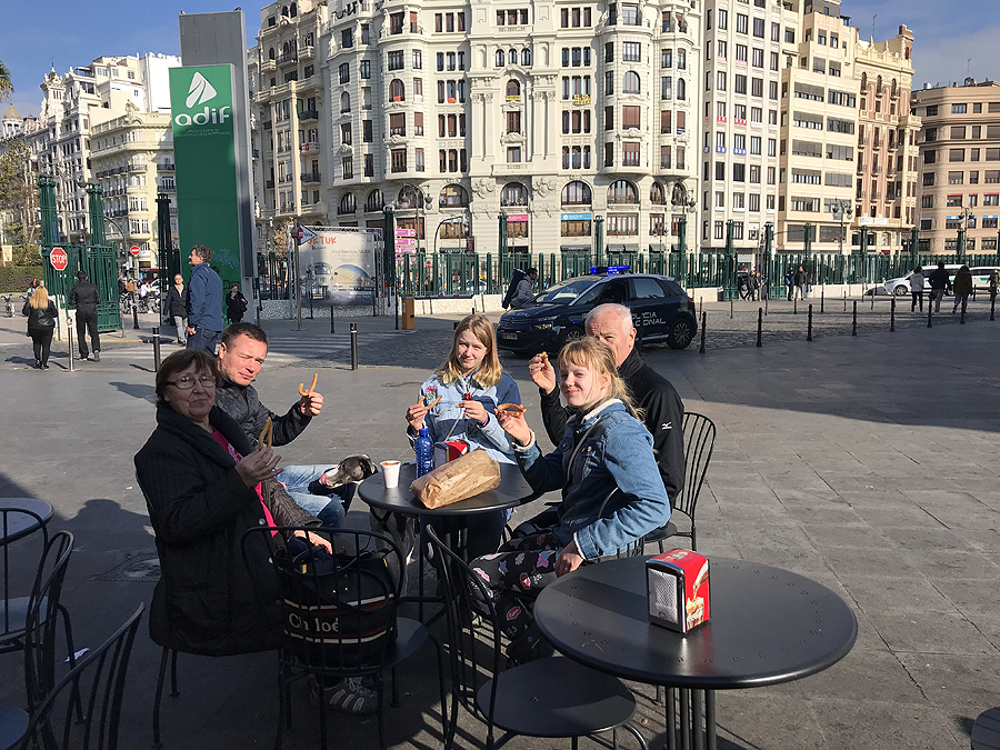 Tada keliavome iki traukinių stoties, ryt išvažiuojame link Kartagenos, o į mašiną tai visi netelpame, teks man autobusu važiuoti. Bilietą galvojau nusipirkt stoty, informacijoje, bet angliškai niekas nekalba, automatai rodo, kad bilietų nebėra, prisėdu, kol šeima kemša churas su šokoladu, nusiperku bilietą autobusu Valencia-Murcia.