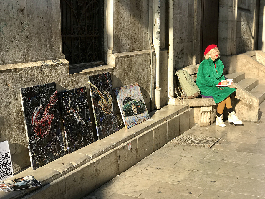 Dievinu bare sėdinėjančių ir niekur neskubančių žmonių vaizdą. Pati irgi mėgstu pasėdėt ir paspoksot į praeivius...