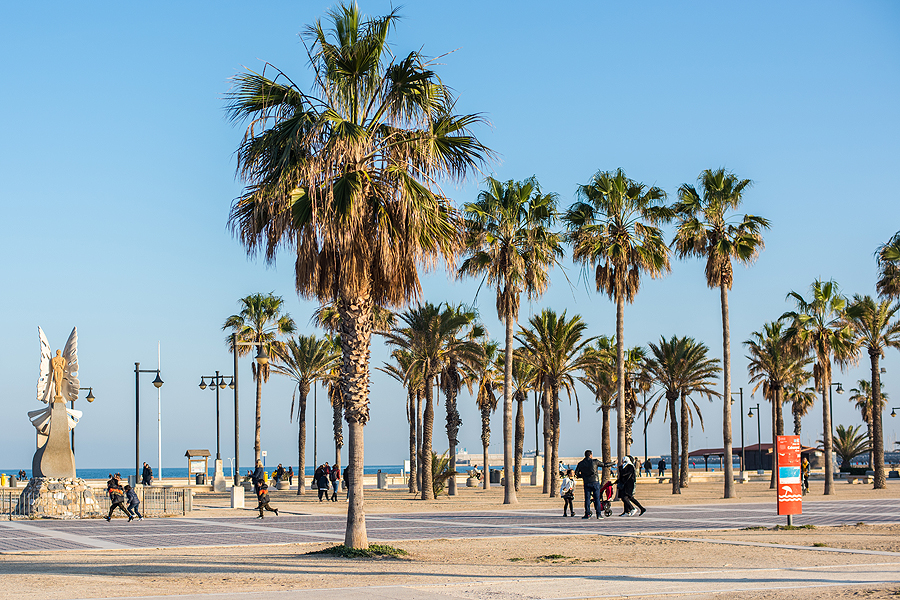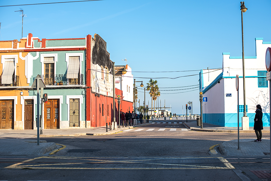 Išlipam iš parko (gerai skamba) ir einam didele ilga gatve, kurios vidury yra žalia zona ir kuri veda iki pat jūros av. de Blasco Ibanez.