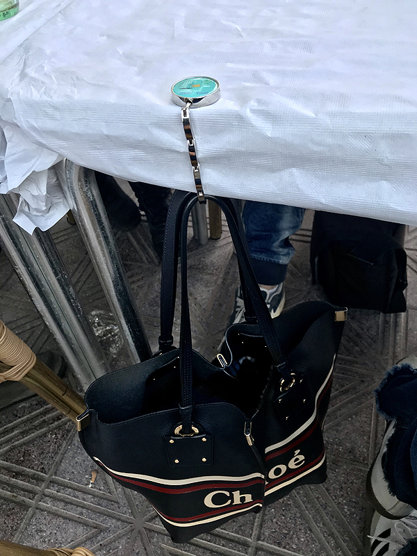O pasirodo čia mano tašėms pakabėlė! Jėėė! Koks geras daiktas! Nes kartais ant kėdžių nepasikabinsi, slysta, o ant žemės nededu niekada, tad tenka spaustis su taše ant kėdės ir burbėt.