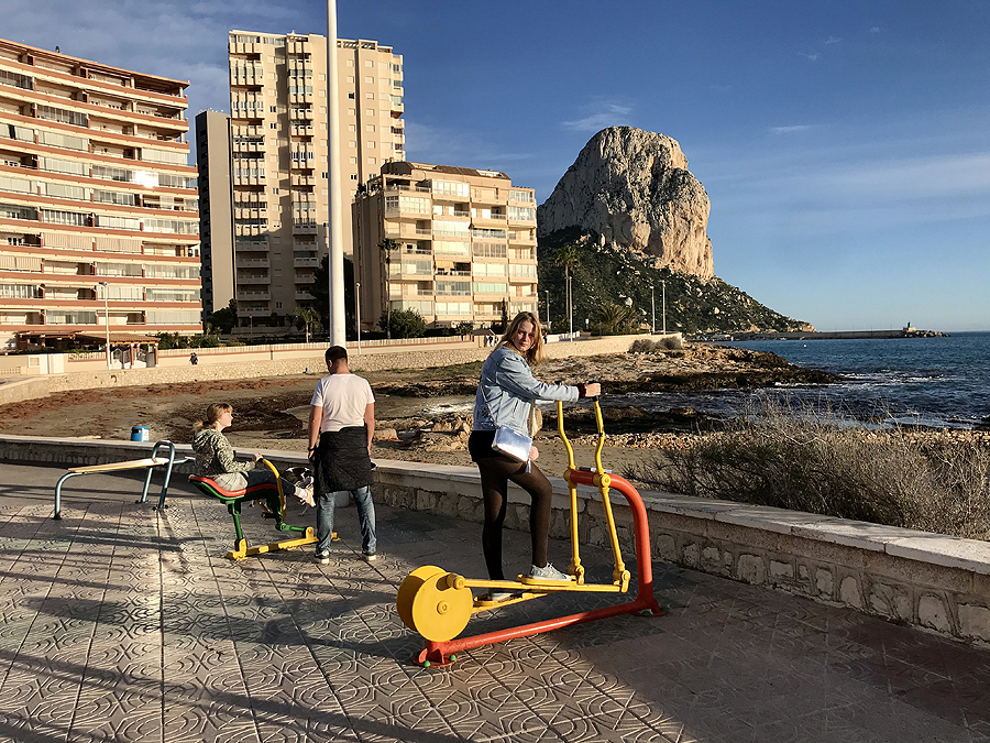 Ir štai gruodžio 22d vakare mes jau Calpe - ramiam pajūrio miestelyje šalia Alikantės. Turi savo promenadą, pliažas akmenuotas, savo daugiaaukščių, druskos ežeriuką su flamingais, parduotuvių maisto ir ne maisto...