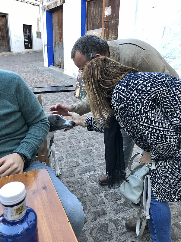 Ogiukas gauna savo pirmąją dėmesio dozę, girdim tik Que bonito! ir ispanų porelė jau glosto jį, nekreipdami dėmsio į mus.