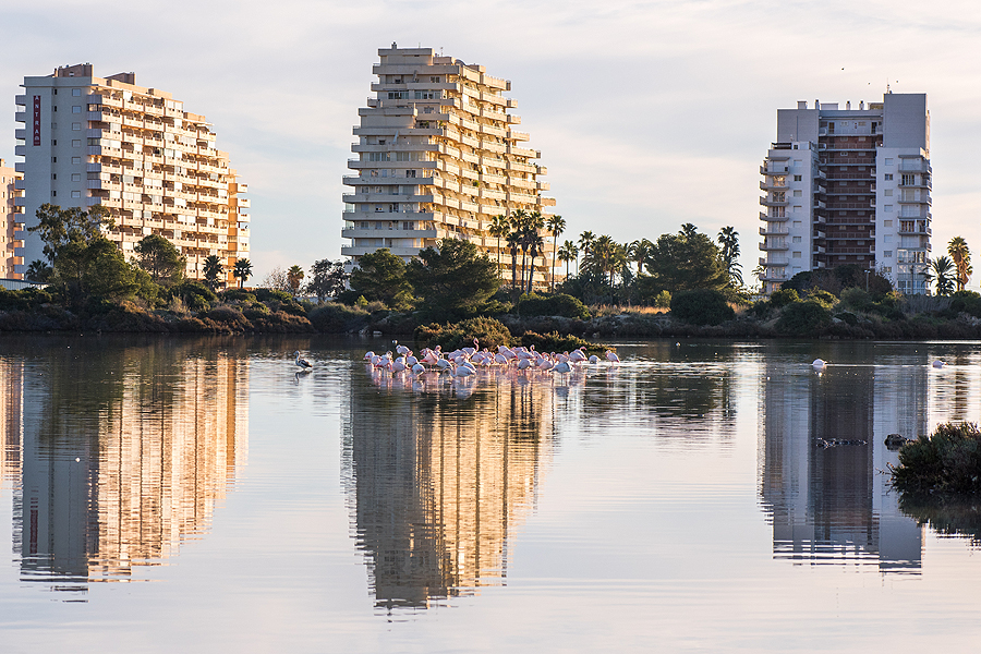 Sėlinome su Ogiu aplink visą nemažą balą vidury Calpe, nužiūrėjau kuriame gale jie būriuojasi ir tada tyliai ramiai per krūmus, net šuo atsisakė eiti kartu, turėjau tempt per jėgą. Pripratęs prie šveicariškų takelių mat. Pakeliui dar šnektelėjau su šveicaru, vedžiojančiu šunį, atvažiavusiu čia žiemoti su kemperiu. Kaip gera mokėt kalbų. Tipo, ispanai labai žiūri, kad visi rinktų šunų išmatas, bet jų tiek visur voliojasi! Tai tas šveicaras pasakė, kad dar ir vandens buteliuką reikia nešiotis - kad nuplauti viską. Hmmm, na, gal ir yra tokios taisyklės, bet niekas jų tikrai nesilaiko - kai kuriuose miesteliuose net nosį rietė nuo šlapimo tvaiko, pas ispanus žolė neauga, tas visur asfaltas, plytelės ir net marmuras, bet žolės nerasta. Lietaus nebūna, o šunų daug, tai taip ir kvepia visi miesteliai... o kas vasarą?
