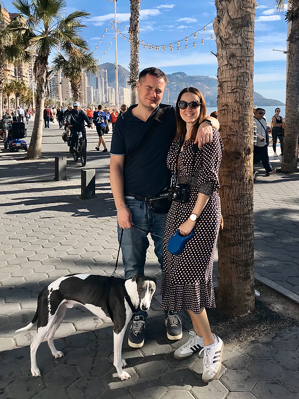 Kitą dieną planuose Benidormas, dėl to, kad uošviai buvo ir labai gyrė, ir dėl to, kad matėme nerealiai aukštus dangoraižius nuo autostrados - įdomu pažiūrėt, kas per vieta. Ir ką - kai jau važiuojant mašina užmatau kažkokį vyrą be maikės pusnuogį, aišku, kad vietinių su kailinukais čia nepamatysi :) Miestelis, vadinamas Ispanijos Niujorku - labai daug dangoraižių - prikištas turistų, veiksmo, kavinukių, parduotuvyčių, pliažas smėlėtas ir gražus, platus, pilnas žmonių, gultų, ko tik nori. Mūsų Ogiui sutraukia skrandį, tad vyras su juo slenka visos promenados pakraščiu, kad pačioj paradinėj vietoj mūsų gauruotasis nepratrystų, (o jis mėgėjas taip), o aš fiksuoju...