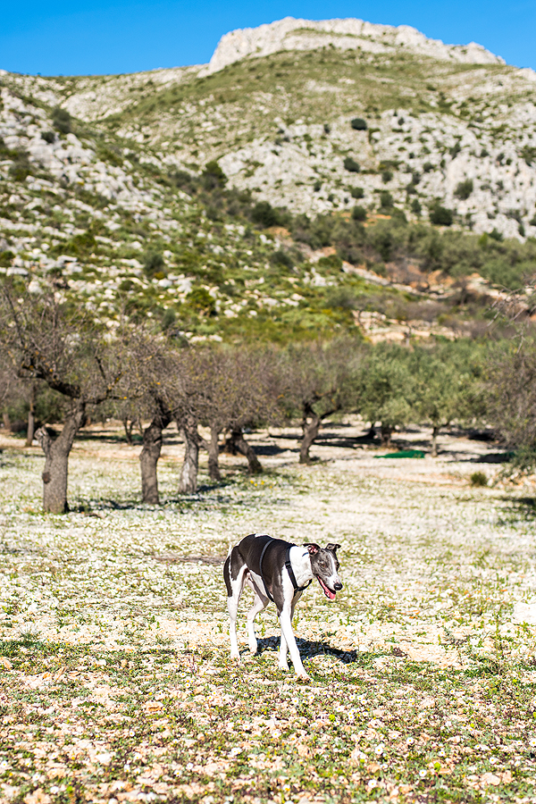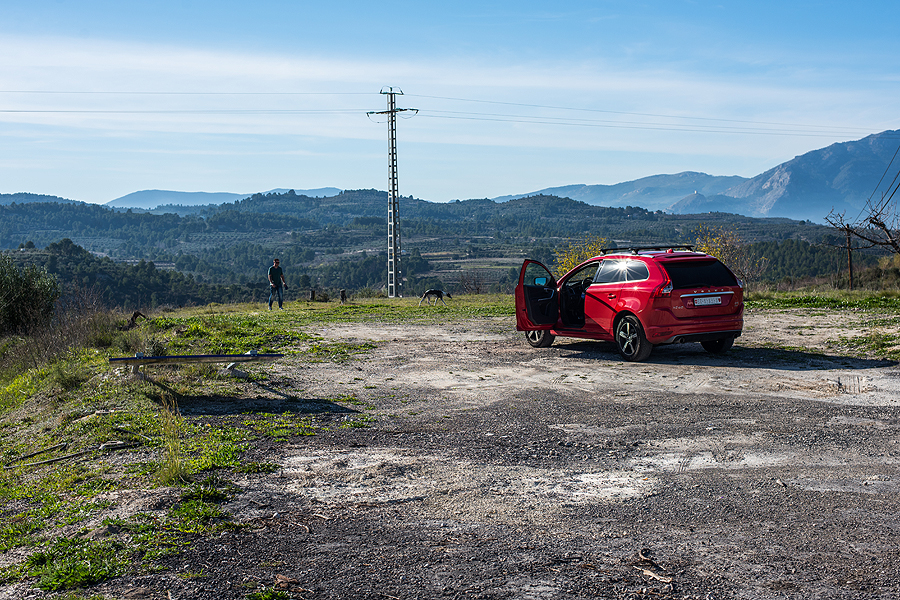 Pakeliui važiuojant į visišką kaimą Bocairent - kratomės 80km virš valandos ir dar pasukam pravedžiot šunį į šunkelį, važiuojam, važiuojam, niekaip nėr kur sustot išlipt, aplink vien alyvmedynai, kalnai ir viskas. Bet įdomus keliukas, telefone matau jį, navigacija net nerodo. Galų gale užmatom kur įkišt mašiną ir stabtelim.