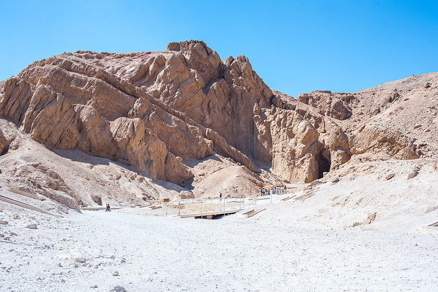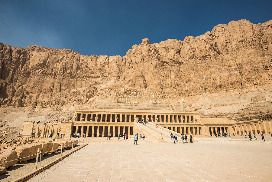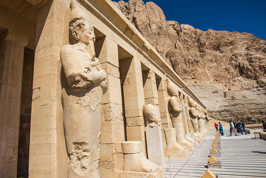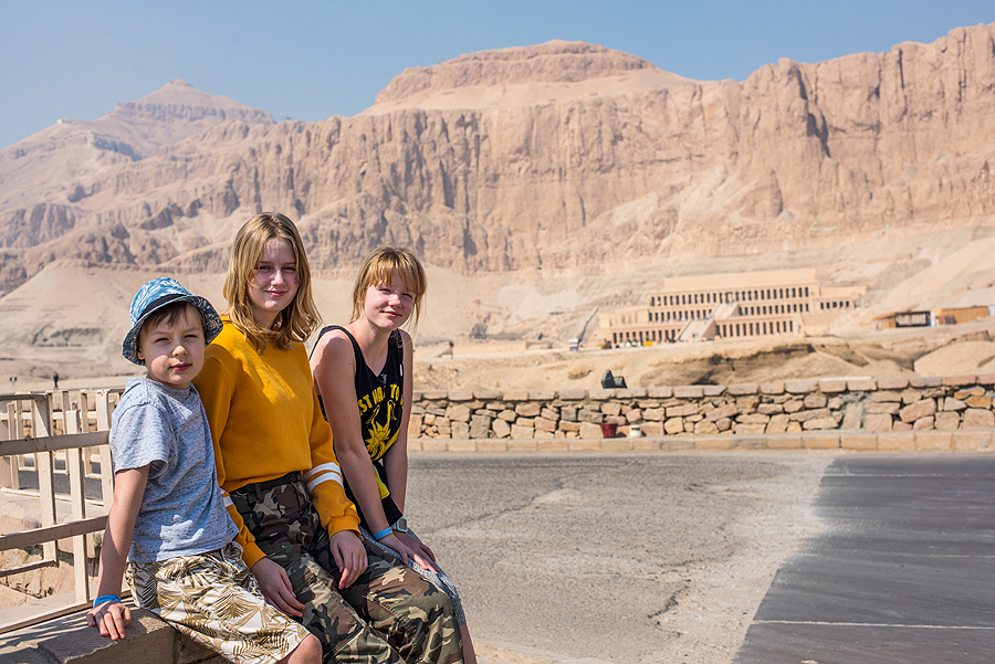 Hačepsutės šventykla matosi fone. Nykokas pastačiūkštis.