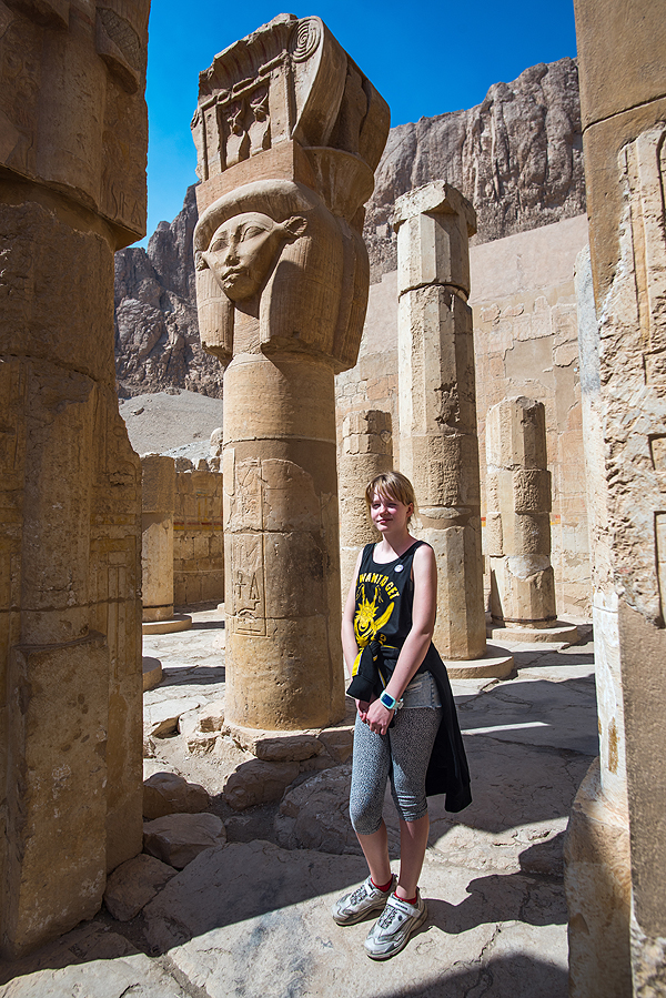 Nuklausau viena ausim gido - mirus faraonui Tutmosiui III, 18 - osios dinastijos laikotarpiu, faraone tapo moteris, jo žmona Hačepsut perėmė valdžią. Štai jos atvaizdas ant kolonos.