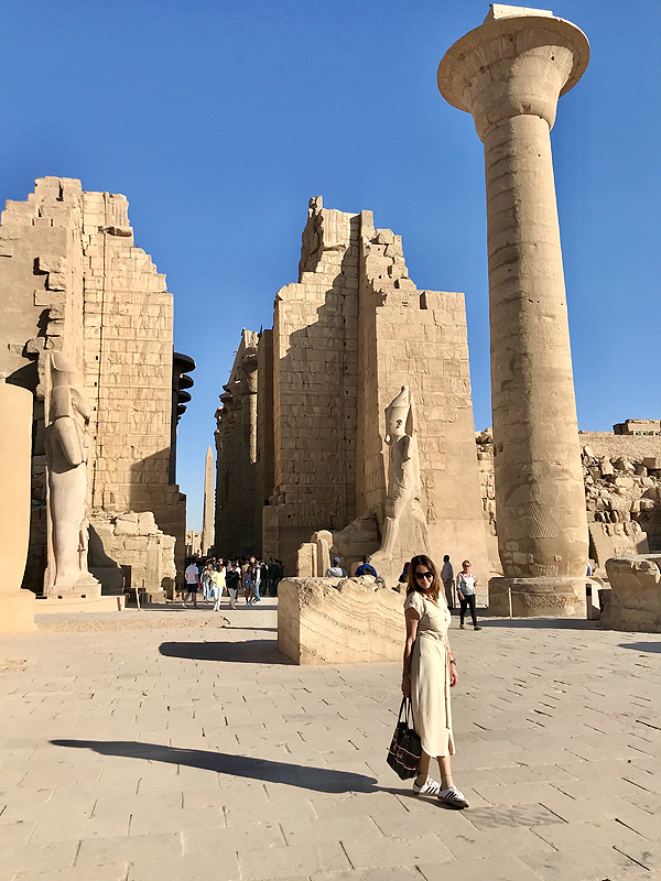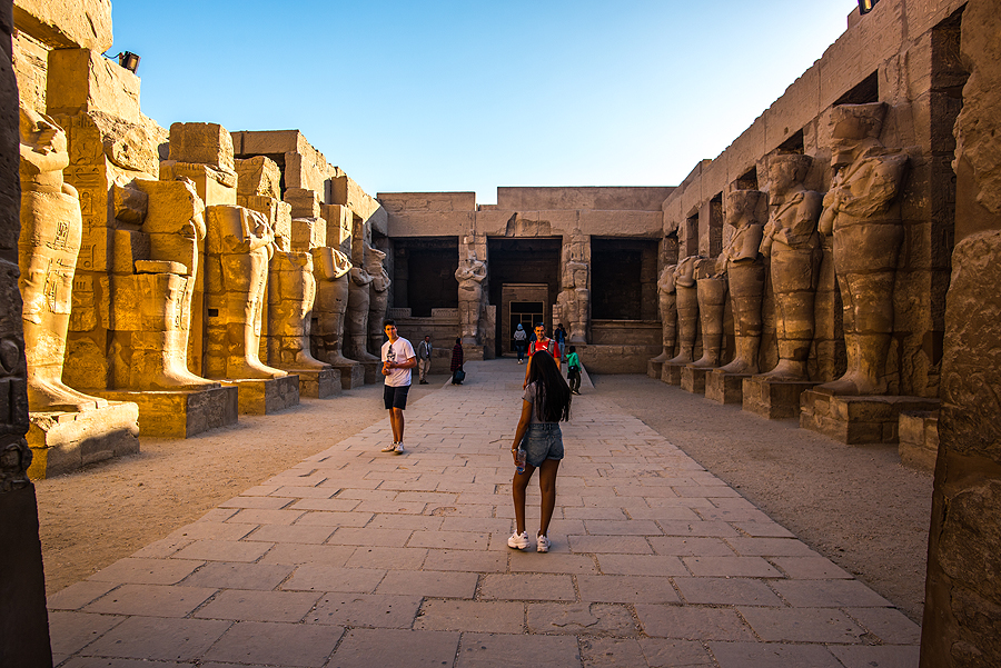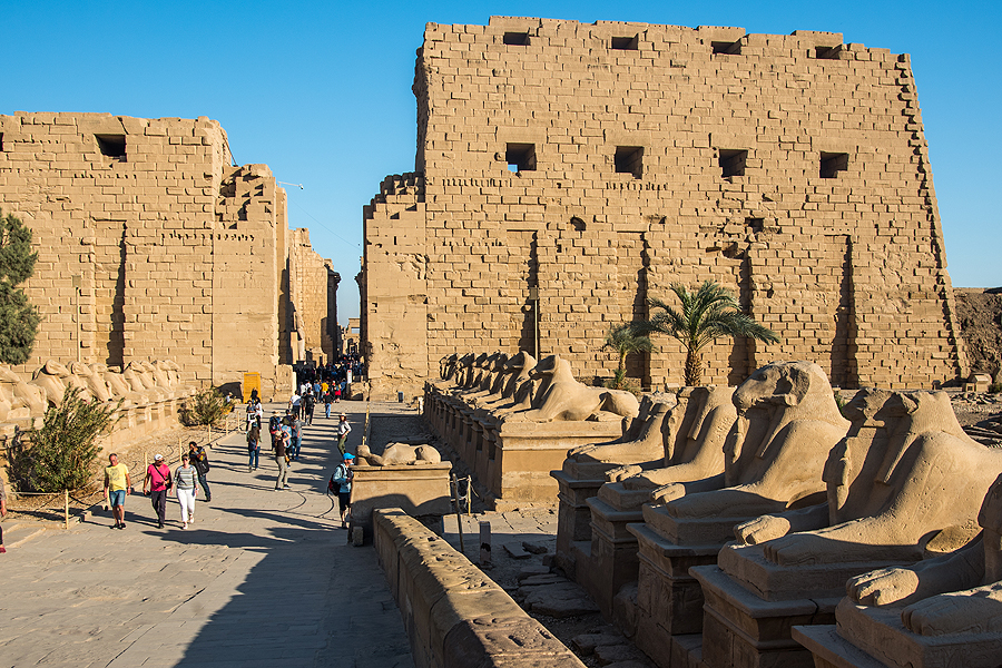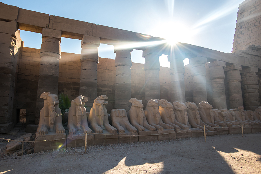 Ir pagaliau - Karnako šventykla - daugiau nei 100 kv.m. užimantis šventyklų, obeliskų ir statulų kompleksas, skirtas egiptiečių dievų ir faraonų didybei pademonstruoti. Į Karnako šventyklą veda sfinksų su liūto kūnu ir avino galva alėja.