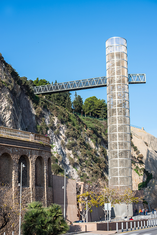 Ryte visi suaugusieji sėdam į mašiną ir už pusvalandžio jau keliamės šiuo liftu į kalvą, ant kurio yra Cartagenos pilis.