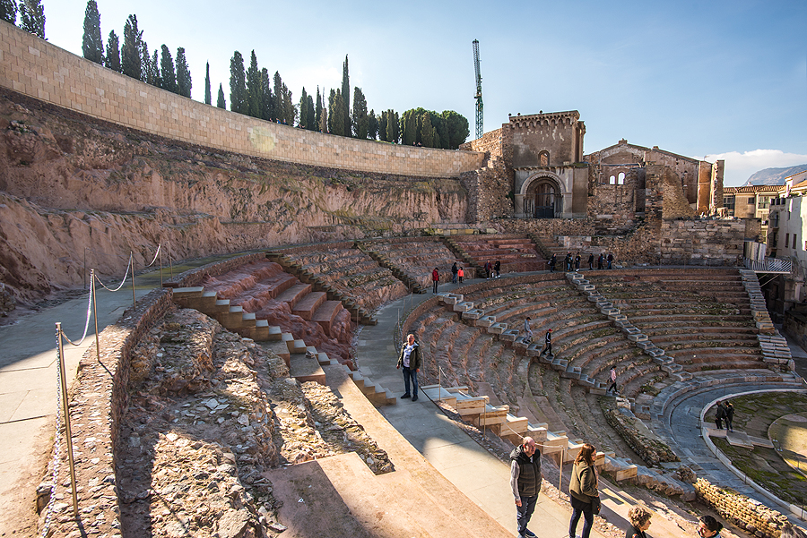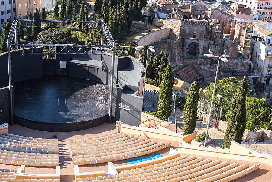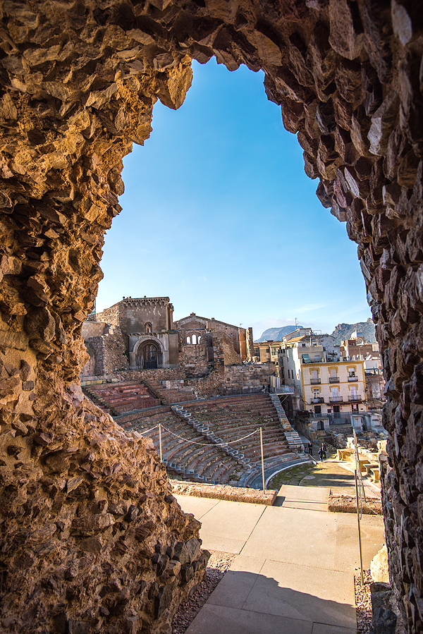 Taigi, oficialiai čia yra amfiteatras - apleistas, nelankomas, nesutvarkytas. Matyt jį galima užsikėlus liftu ant kalvos. Kitoj kalvos pusėj yra dar du teatrai :) vienas senovinis išlikės romėnų, kitas naujas, šiuolaikinis, plastikinėmis kėdėmis. Nemažai vienam miesteliui, ką? Fone dar ir maurų ex pilis matoma, ir apskritai ant kiekvienos kalvos vos ne po pilį ar tvirtovę...