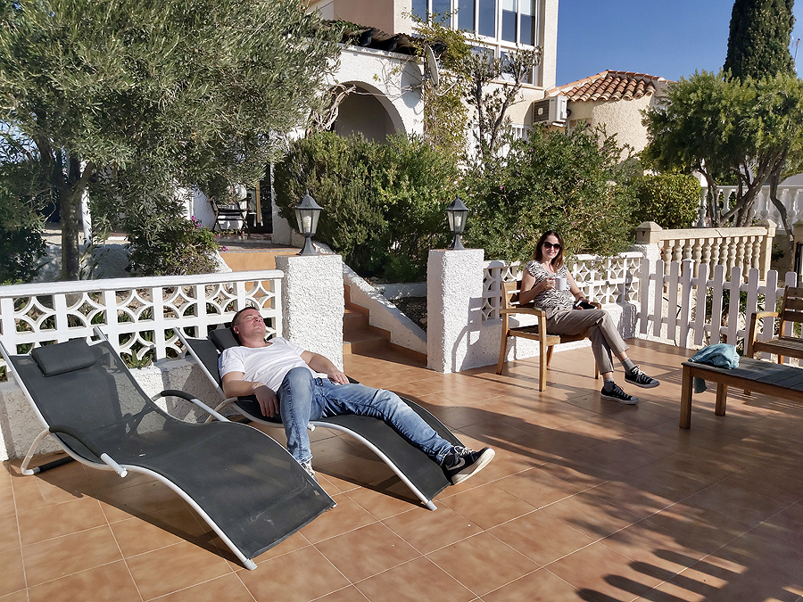 Grįžę pailsime namuose, pasimėgaujame saule terasoje...