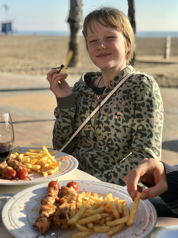 Aš turiu suderinti stalą ir paklausti, ar duos valgyti, kaip vienintelė, nors kiek žinanti kažką ispaniškai - stengiuosi. Lyg duos, tik sakė reiks palaukt. Sėdam. Tikimės, kad laukt neilgai reiks.