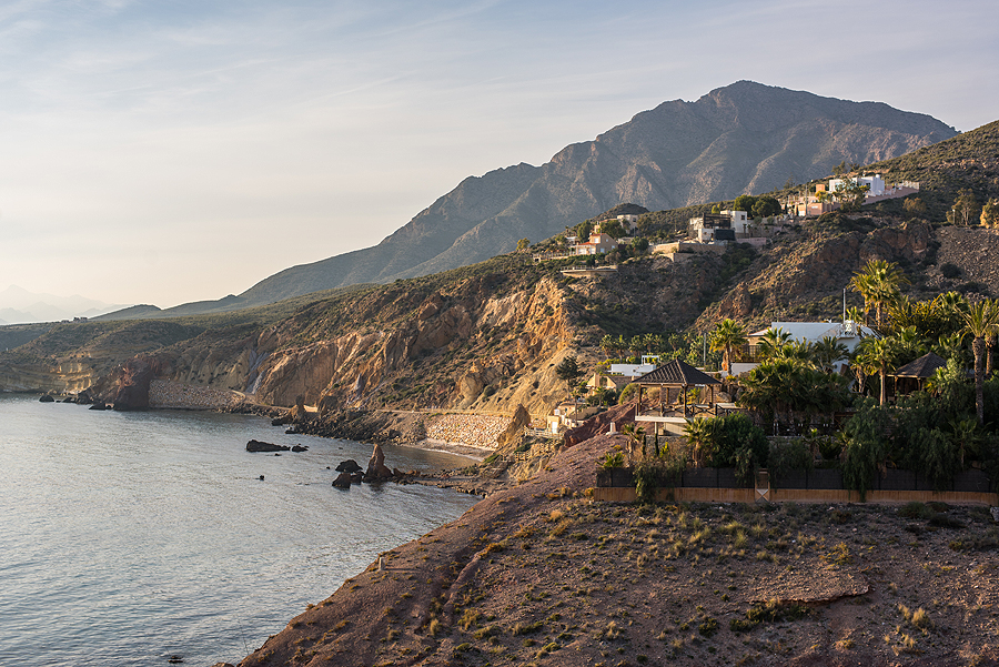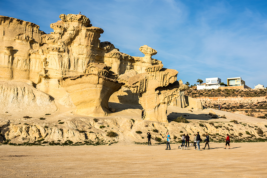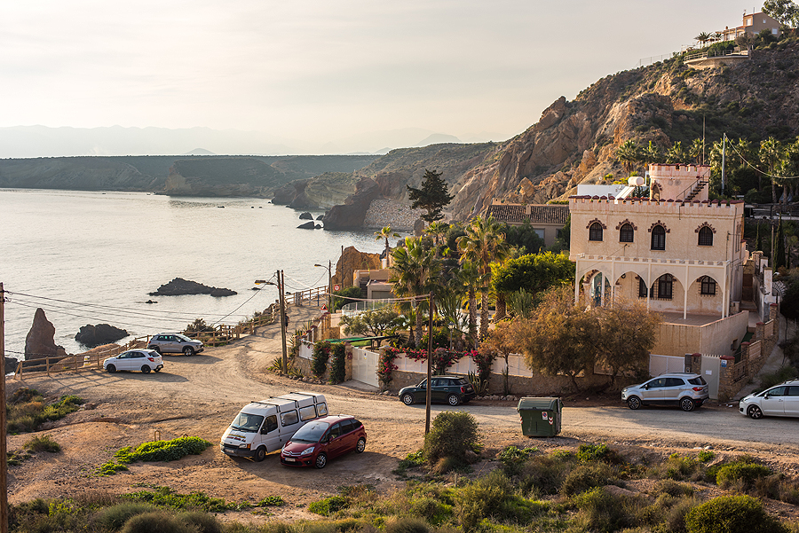 Bolnuevo - mažas paplūdimio miestukas, turintis savo promenadą, pliažų, bariukų, parduotuvėlių ir didžiūūūlį kemperių parką, jame daug daug kemperių - jų numeriai vokiški, prancūziški, olandiški. Taip pat yra šunų pliažas, nudistų pliažas ir dar yra gamtos stebuklas - erozijos apdirbtos uolos, labai gražios. Viską reikia apžiūrėti. Bet pirmiausia planuose išvažiuoti dviem reisais iki gynybinės tvirtovės prie jūros.