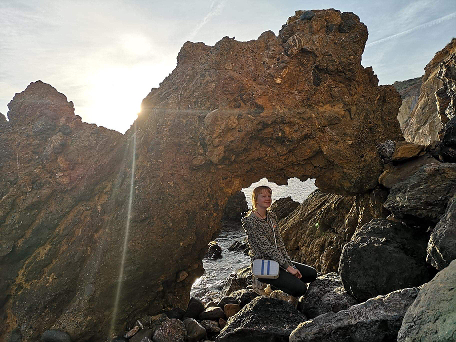 Toliau einame pasivaikščioti pajūriu, o jis nenuobodus, pradžia miestelyje, tada kalvota, uolėta, akmenuota vietove.