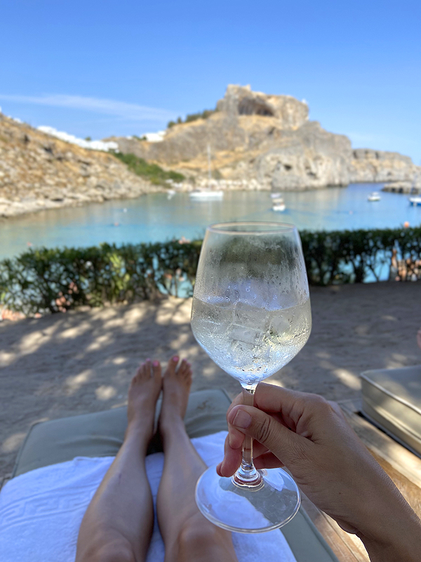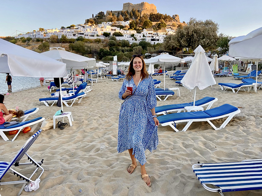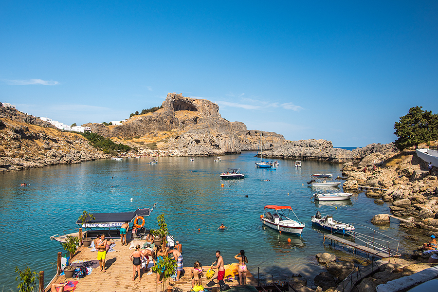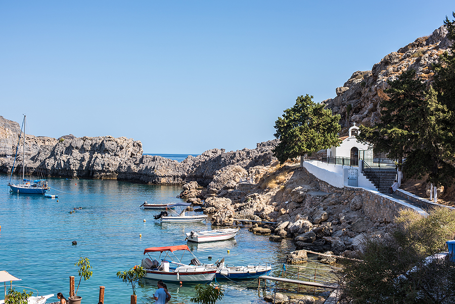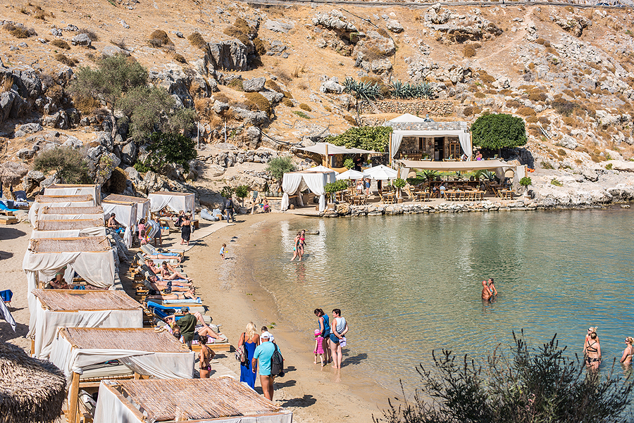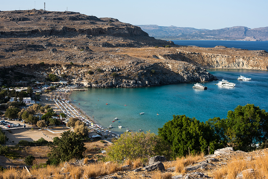 Lindos - kelios gatvytės vidury kalno su turistų džiaugsmu - barai, parduotuvėlės, ant kalno pilis ir Atėnės šventykla ir kt. gėriai, o žemai - St. Paul pliažas. Apvaikštau viską viena, nes vyrui tokie Palangos tipo miestukai nepatinka. Lindos - sumažintas Santorinis, tie patys baltų namukų labirintai kalne.