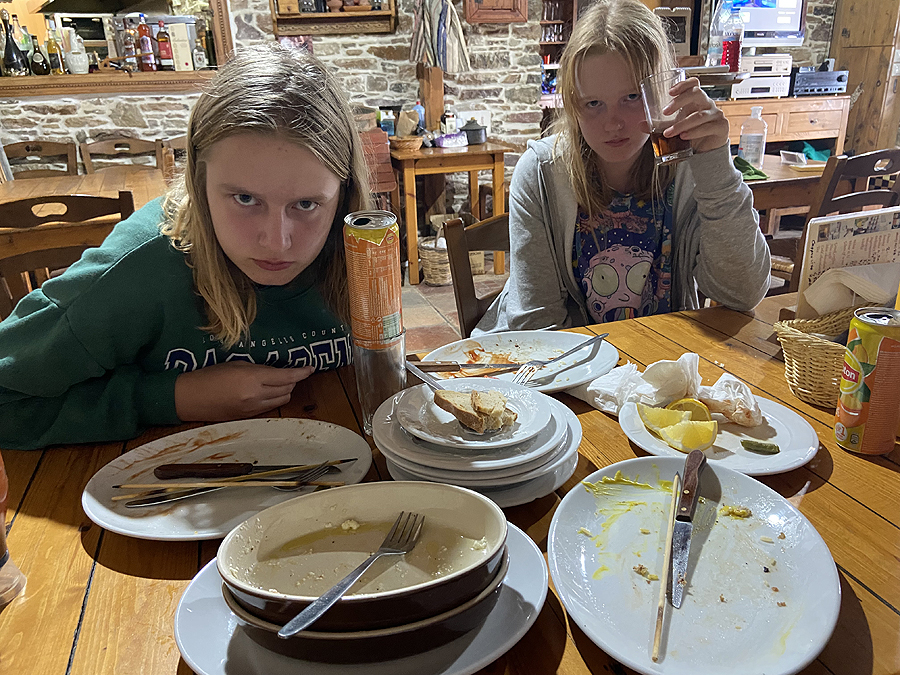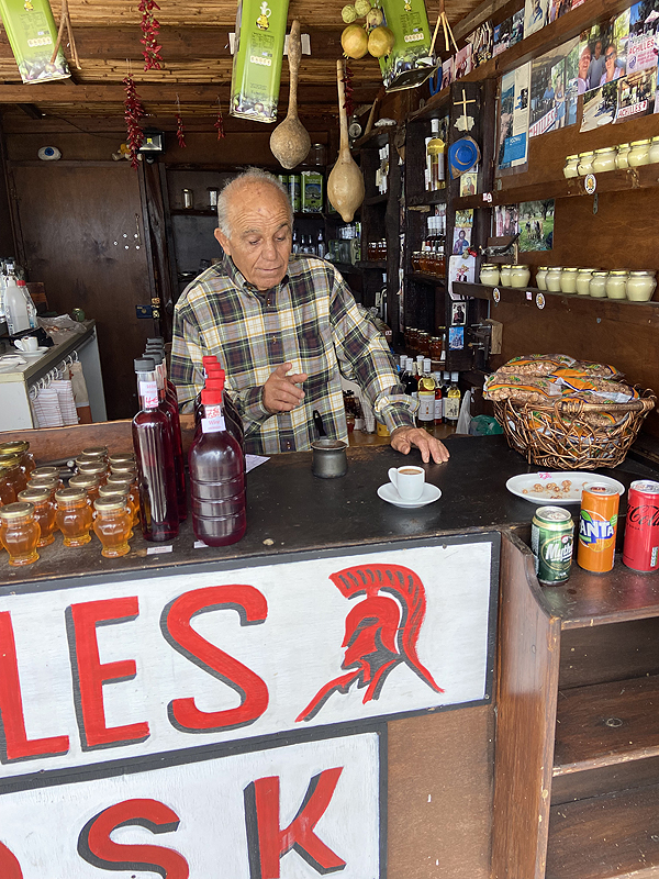 Sekantis taškas nutinka netikėtai, važiuojant per miestelį ir pamačius iš tavernos mojantį žmogeliuką. Maža taverna mažam miestely kalnuose, aptarnaujantis savininkas ir jo žmona, kol nėr klientų žiūrinti TV apie 6.4 balų žemės drebėjimą Kretoje. Skaniai prisikemšam, kaip visad, gyros, souvlaki, tzadziki, graik. salotos su burnoj tirpstančiais saldžiais pomidorais ir traškiu agurku, mousaka pašildyta, žinoma, nusprendžiu nebeimt jos daugiau, nors skani, bet ne šviežiai padaryta, su užkepta feta lb skaniai sueina.