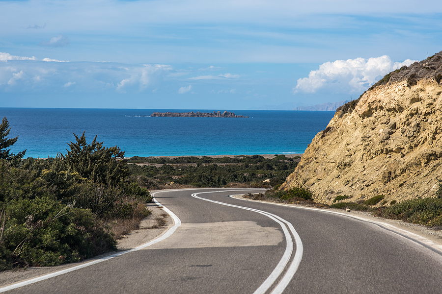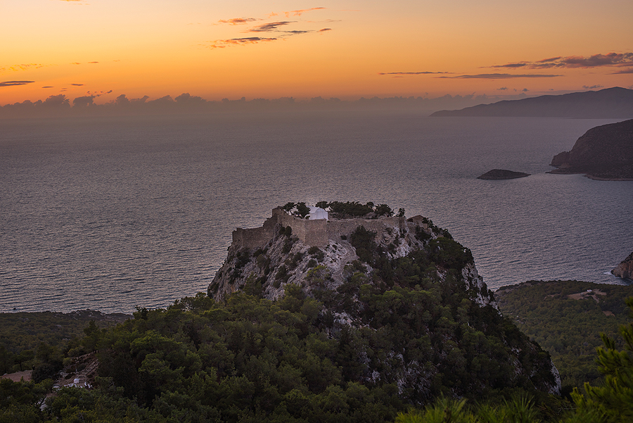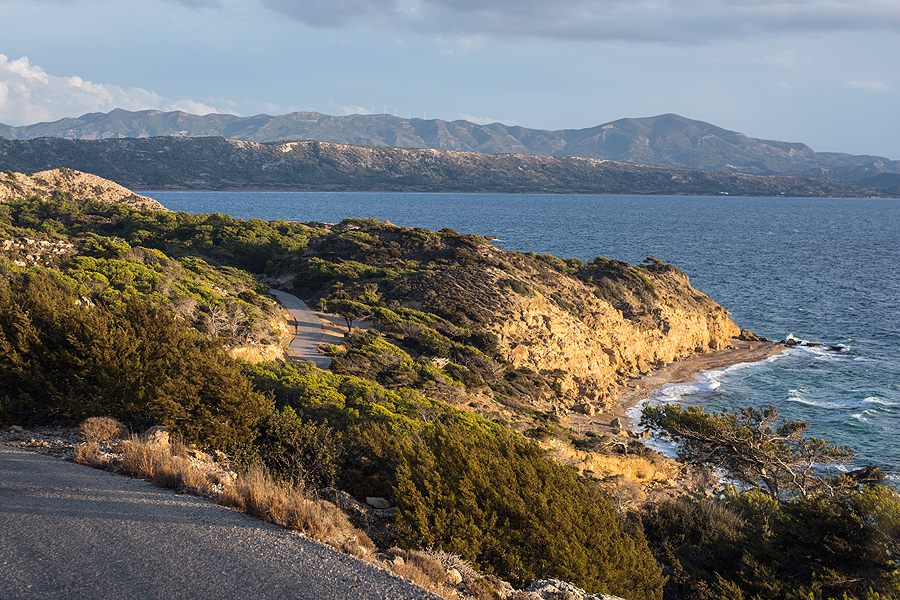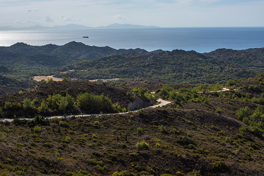 Sunkiai nešdami pilvus lendam į savo šaldytuvą ir važiuojam pro aukščiausią Ataviro kalną Rode, kur reik apsispręst, kairėj - Monolithos pilis, dešinėj - Kritinia pilis. Sukam į kairę.