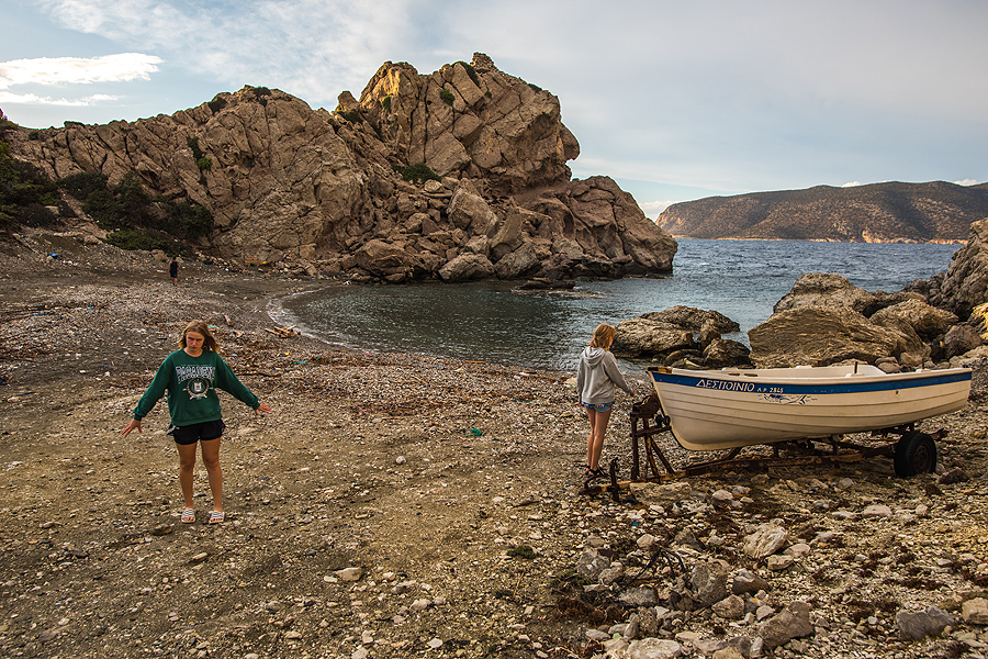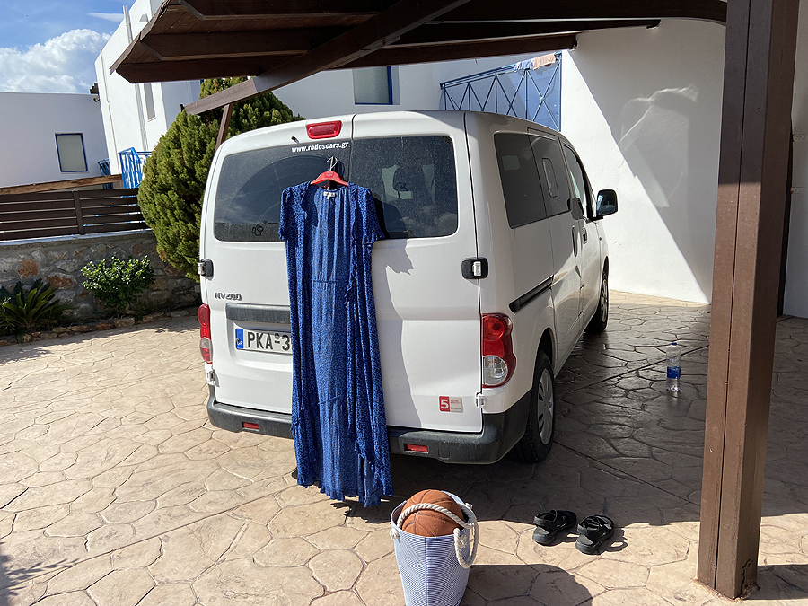 Išlipęs iš sofos, vyras dar įkiša nosį į jūrą, bet asortimentas nesužavi. Oras niaukiasi, šiltai palynoja tokiais trumpais tarpais, bet mes važiuojam į kitą salos galą apžiūrėti vienuolynų.