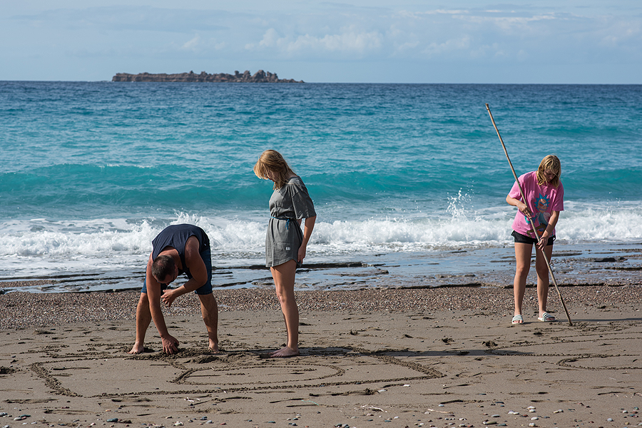 Katamarano nėr, šeima pasėdi ant "sofos" Kiotari paplūdimy.