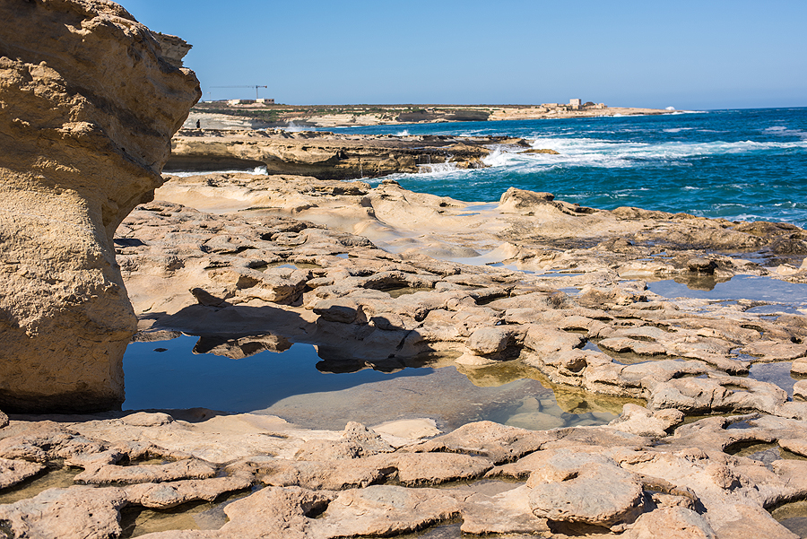 Marsaxlokk bažnytėlė... Mes laukiam savo taksisto, programėlė rodo, kad jis a la mus paėmė ir nuvažiavo į tikslą... ok, einam pėstute iki St. Peter's pool. 2,5km pro visokius statomus objektus, mašinų kelią ir pan.