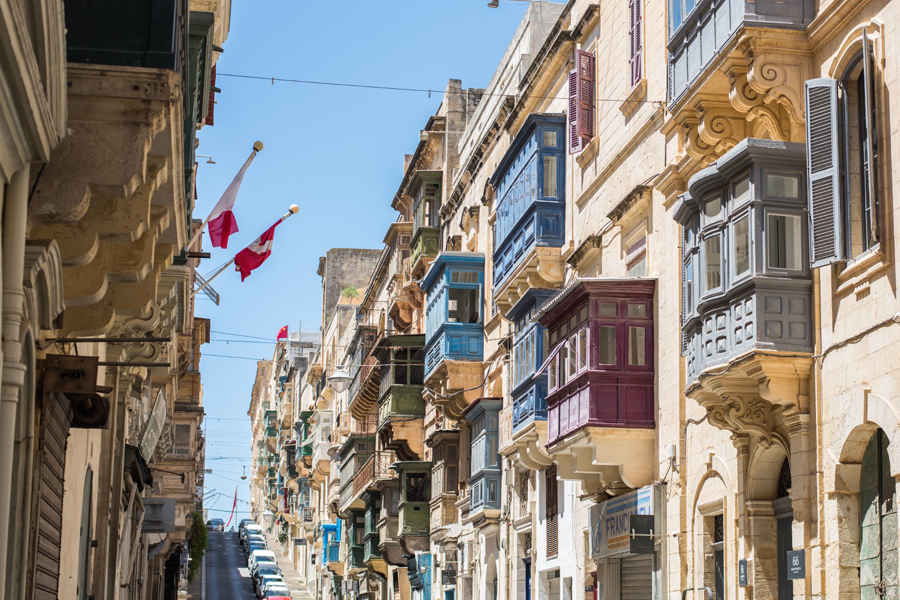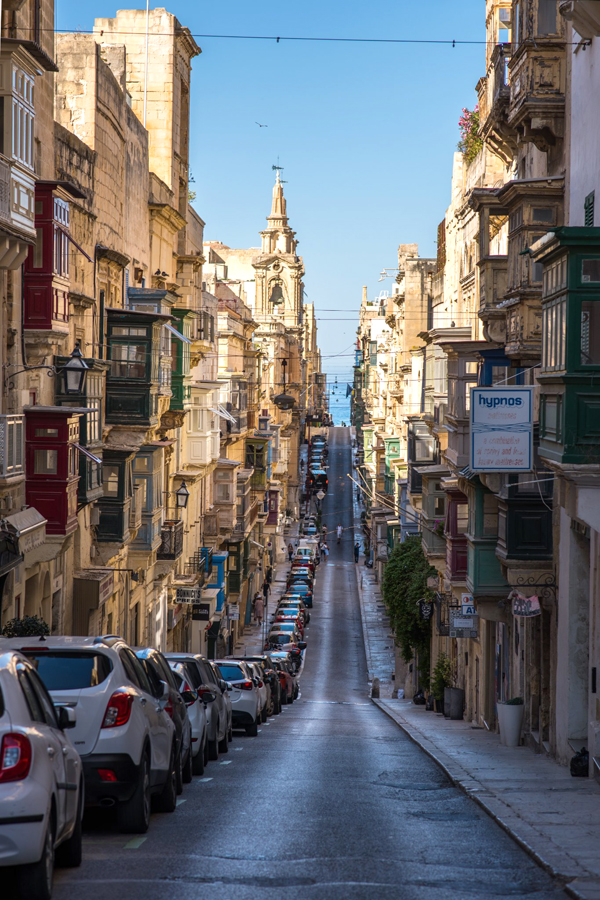Pro įspūdingo dydžio apsauginių sienų užkardą einame į senamiestį. Labai norėjau surast gatvelę, einančią žemyn ir aukštyn, tad suradę, ilgokai ten užtrukome su drauge fotografe. Šiaip Maltoj tokie gražūs balkonai! Neatsifotkinom.