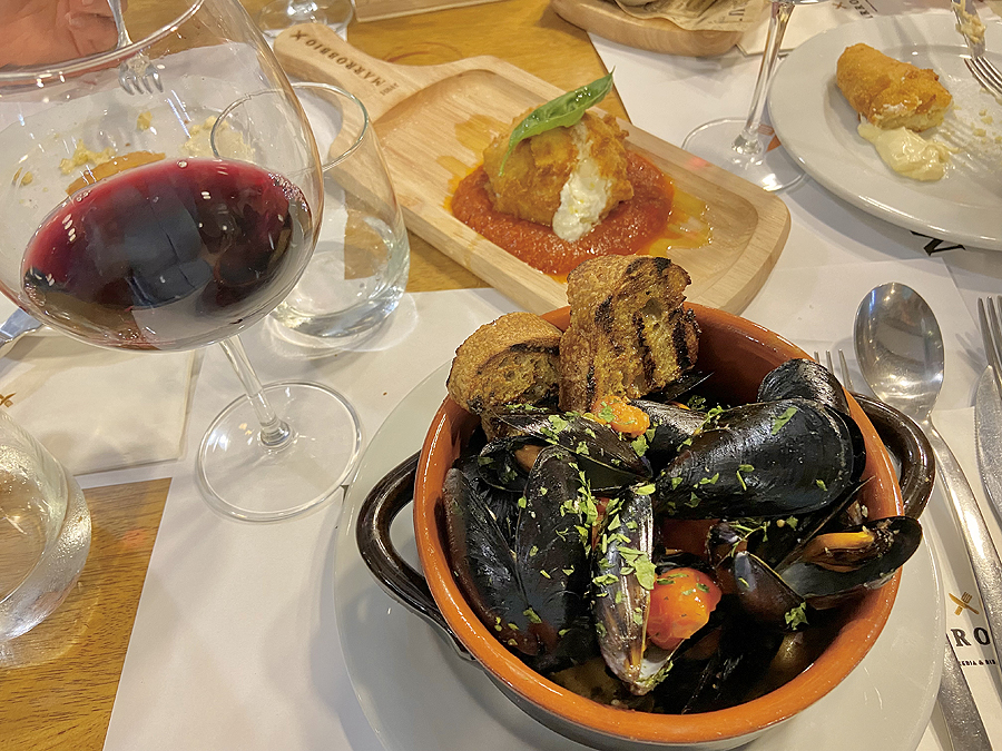 Netyčia užklystame į restoranėlį, kuriame valgau labaaai skanias midijas pomidorų padaže. Dar vynas daro savo darbą - kėlėmės 4 ryto, tad prie stalo vos neužmiegame. Šliaužiam ilsėtis.