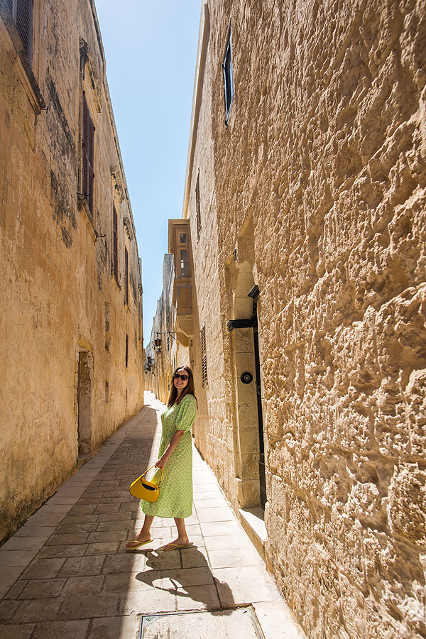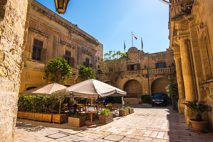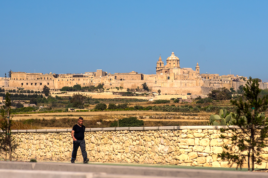 Einame į Mdina pro vienus iš trejų vartų. Ryte ramybė, žmonių nedaug. Arabiškai medina reiškia miestą. Mdinoje žmonės įsikūrė 4 000 metų prieš mūsų erą (!). Viduramžių ir baroko architektūros pastatuose nuo XII a. gyveno kilmingų ispanų, normanų , siciliečių valdovų šeimų palikuonys
