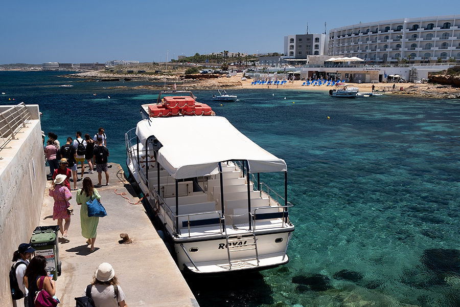Sekantis taškas - Mėlynoji lagūna Komino (Comino) saloje. Atvažiuojame taksi į Cirkewwa Passenger Terminal - keltų keleivių terminalą. Nieko iš anksto nepirkome, vietoj pasiėmėm laivelį, kartu su kitais turistais gavom dar mini ekskursiją ir į bilietą įėjo keltas atgal, tik jau plaukti atgal galėjome pasirinkti laiką. Darbuotojai perspėjo labai neužsibūti prie Mėlynosios įlankos, nes gale dienos visi norintys netelpa į laivelius.