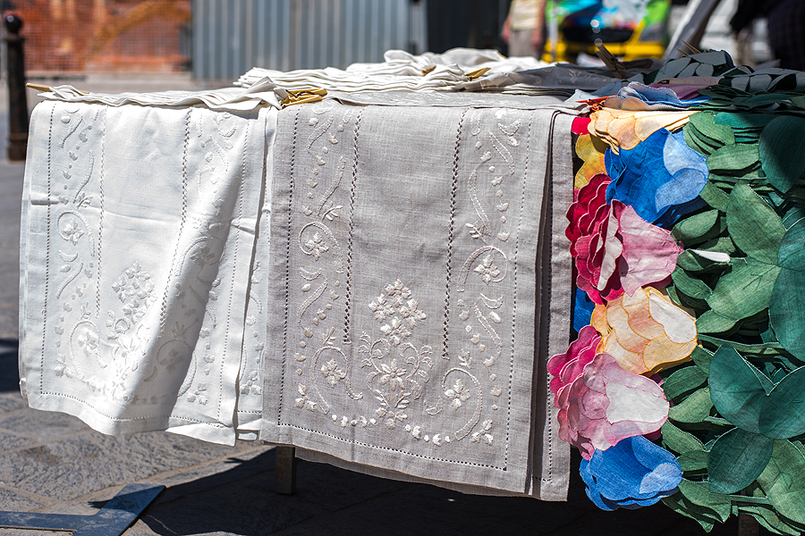 Apžiūrime krantinėje esančius parduodamus dalykus, labai daug gražių tekstilės gaminių. Susigundau tik raktų pakabuku į kolekciją.