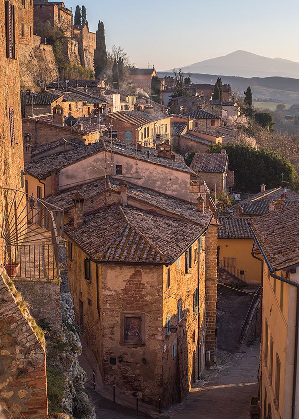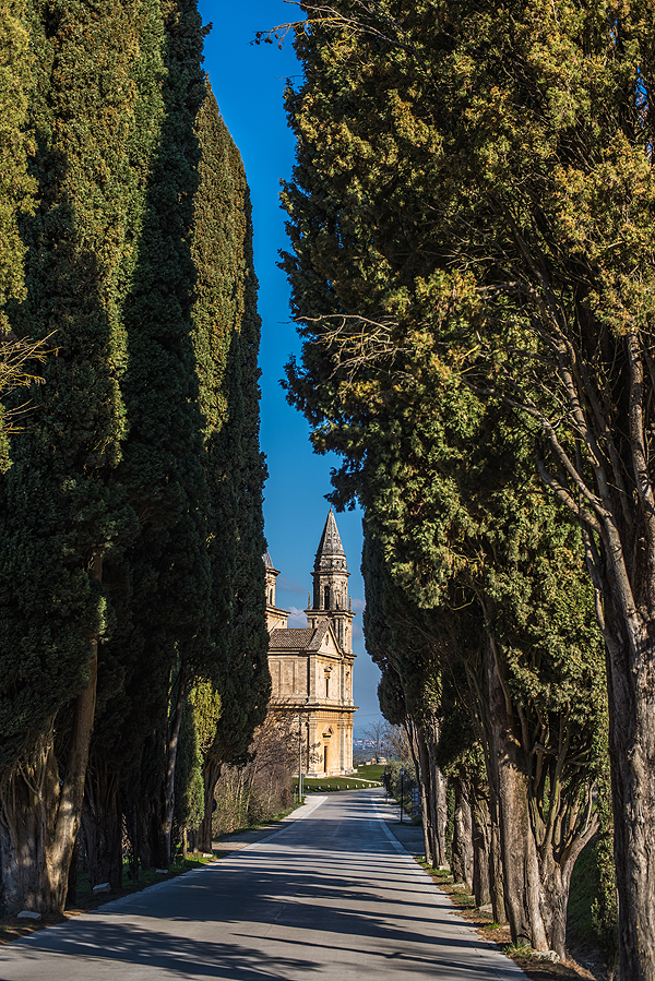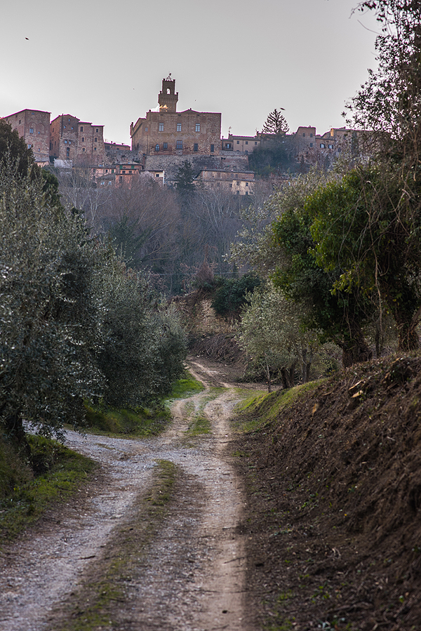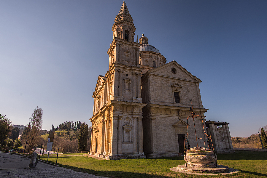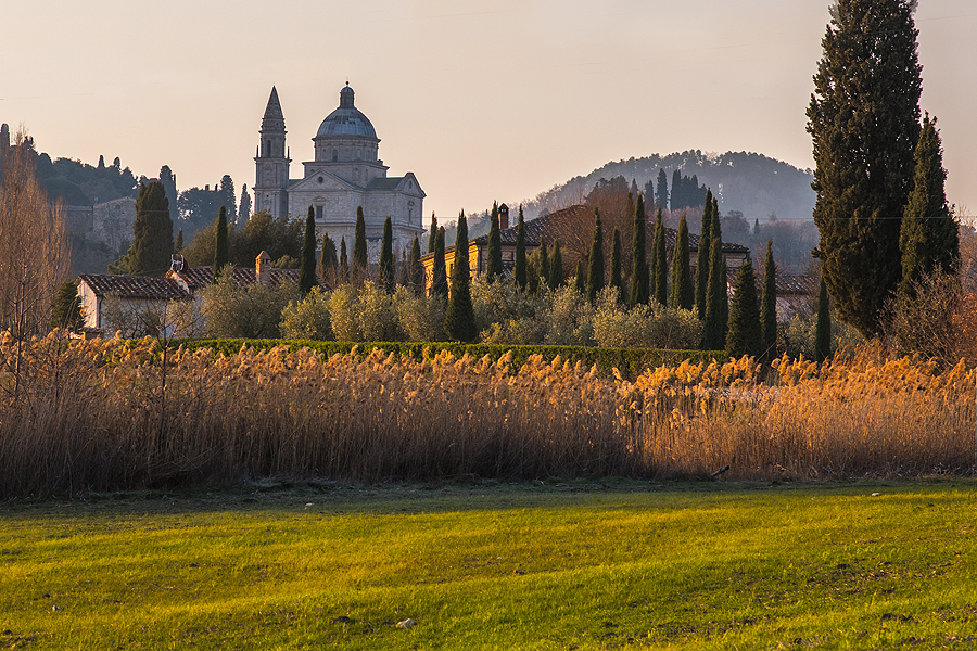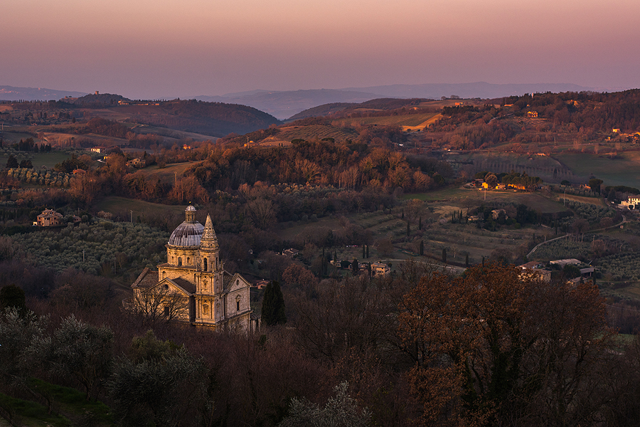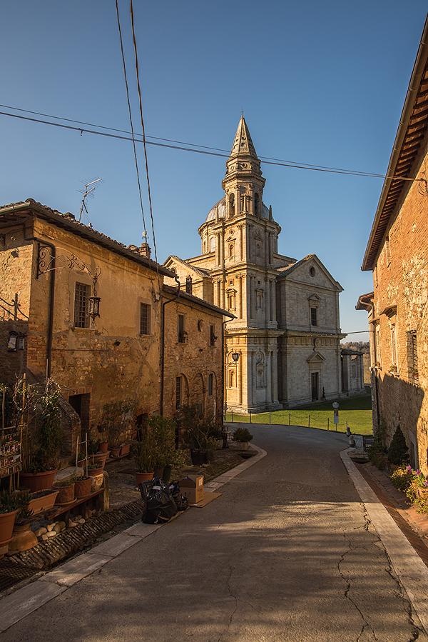 Planas nueit iki Montepulciano view point’o už poros km į laukus nuo miestelio. Einam. Užmatau bažnytėlę nuo kalno, įspūdinga. Einant darosi aišku, kad saulė neapšviečia miestelio gražiai, tas būtų dieną ar vakarop. Priėjus galutinį tašką pamatau, kad verta sugrįžt - gražu.