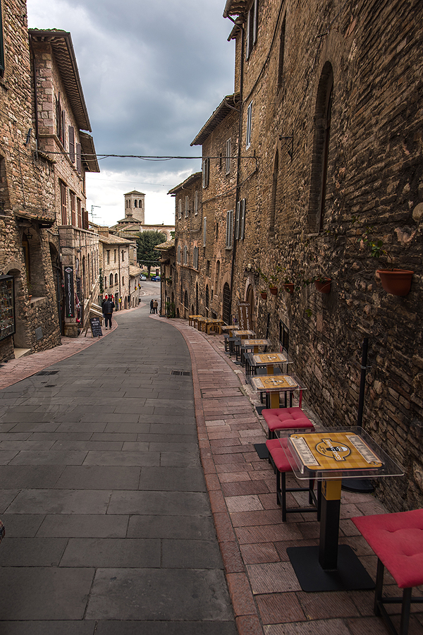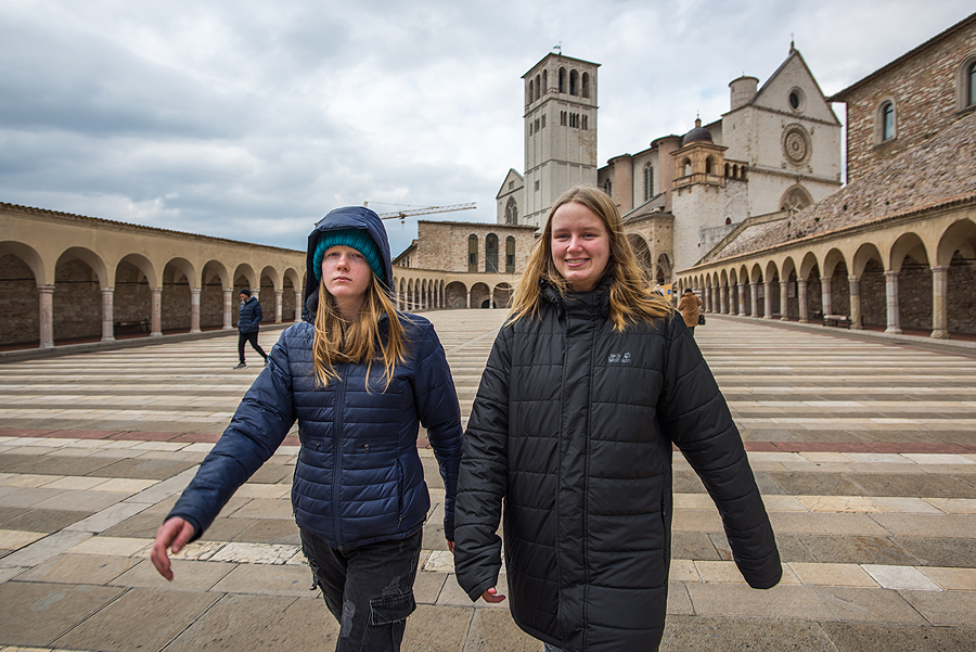 Tada vaikštinėjam po šaltą Asyžių. Pavadinimas kažką labai priminė... Miestas - tvirtovė, daug bažnyčių/vienuolynų, skirtingame aukštyje einančios gatvės, aikštės... Gausiai lankomas maldininkų ir turistų.