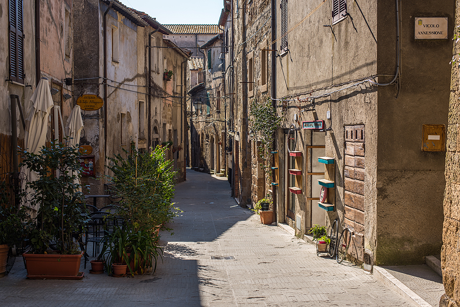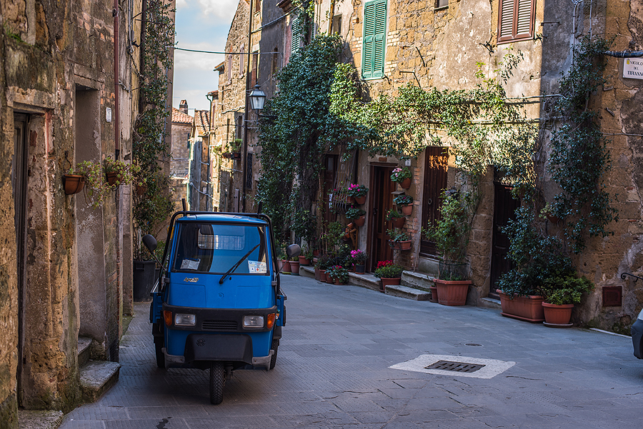 Pitigiliano vaizdas nuo kitos kalvos pusės įspūdingas. Pats miestelis tuščias, daug namų parduodama, dirba vienas baras.